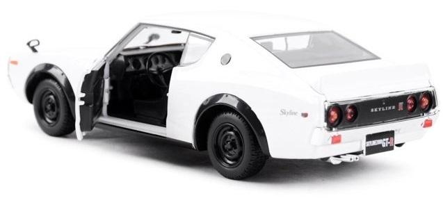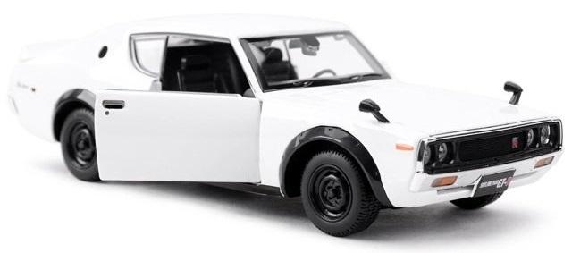 *Maisto Special Edition: 1:24 Die-cast Vehicle – 1973 Nissan Skyline 2000 GT-R KPGC110 (White)*Maisto manufactures high-quality diecast Maisto model cars such as motorcycles, diecast trucks, remote control and muscle cars from makes like Chevy, Ford, Subaru, Harley-Davidson, Mini Cooper, Dodge, Mercedes-Benz and more.*Features:** Beautifully crafted Diecast Model of iconic muscle cars.* 1:24 scale perfect for collectors.* Detailed diecast designs*Suitable for ages 3 & up*