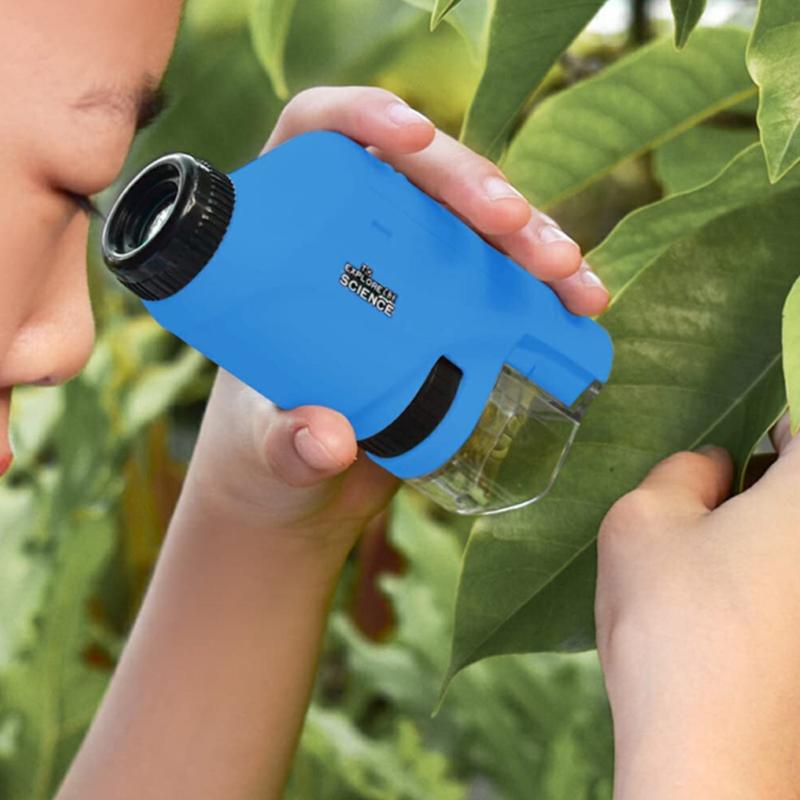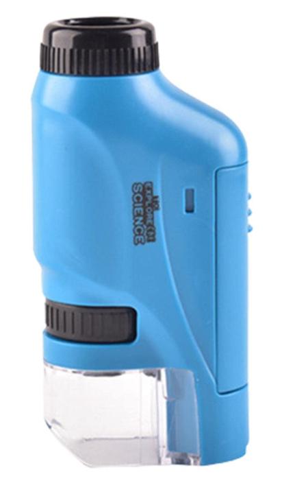 *Children can explore the micro world through the child's pocket microscope science toy, stimulate curiosity about nature, and easily cultivate scientific interest.*Children's mi­croscopes use environmentally friendly aspherical optical lenses with strong light transmission. Built-in LED light, soft and not hurt the eyes. White light sources are used to faithfully reflect the observed color. Let the child observe the situation.Exploring the micro world through this pocket microscope can not only cultivate children's sci­entific thinking ability and observation ability, but also improve children's at­tention to outdoor things and reduce the time of electronic products.*Features:** Children's mi­croscope with 60x-120× magnification.* The microscope is easy to focus, just turn the focus knob slowly to see a clear image.* Pocket microscope is a gift for birthday, children's day, Christmas, etc. for boys and girls.*Specifics:** *Color* – Blue* *Material* – ABS* *Size* – 5.3 × 3 × 10.5cm* *Multiple* – 60X-120X* *Power* – 2 x AAA batteries (not included)*_Tips:_* _Gently dig to open the battery cover and install the battery._