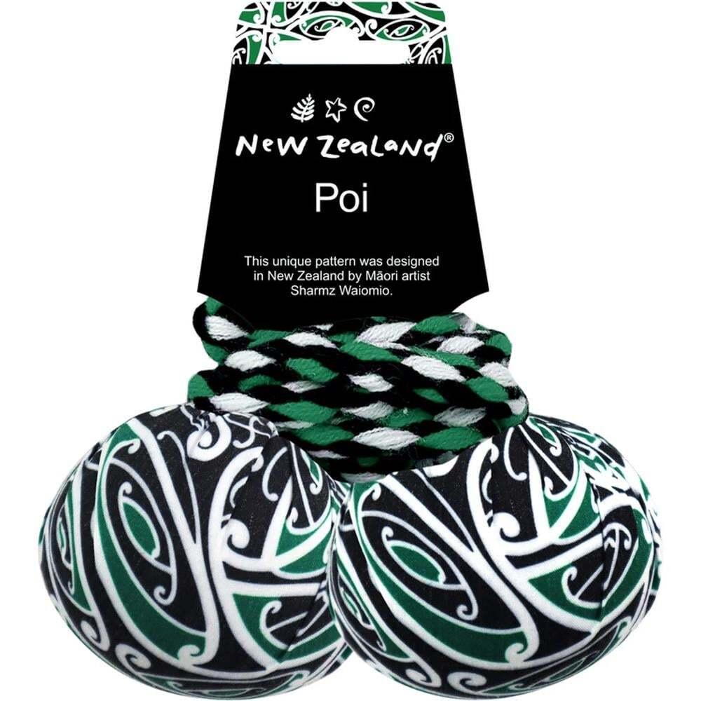 *New Zealand Gift: NZ Poi – Maori Patterned Fabric (Green)*This poi features a beautiful fabric pattern, green, black and white string handle and quality workmanship. The ball has been firmly sewn in place to keep it together during vigorous treatment of kapa haka performance. The original artwork featured on the piece is called Kotahitanga.It represents unison; the binding together of people from all life paths to come together and be one. Waiomio's work showcases te ao Maori through digital drawing. Sharmz is a descendant of Te Arawa, Nga Puhi, Ngati Kahungungu & Ngati Tuwharetoa.*Features:** Approx packaging dimensions: 22 × 9 × 20 cm* This unique pattern was designed by New Zealand Maori artist Sharmz Waiomio.* Fabric poi balls offer quality feel and a beautiful look.* String handles are 50cm long, a great size for young learners.* Quality workmanship means this product will last.*Suitable for Ages 5+*