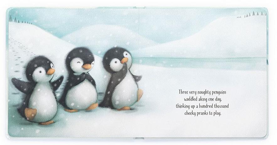 *_Jellycat: The Naughty Penguins Book_*The Naughty Penguins is a tale of mischief and polar pranks! When three cheeky chicks play horrible tricks, they soon find they're out of their depth! A gorgeous hardback with sweet illustrations for snowy storytimes.*Features:*
