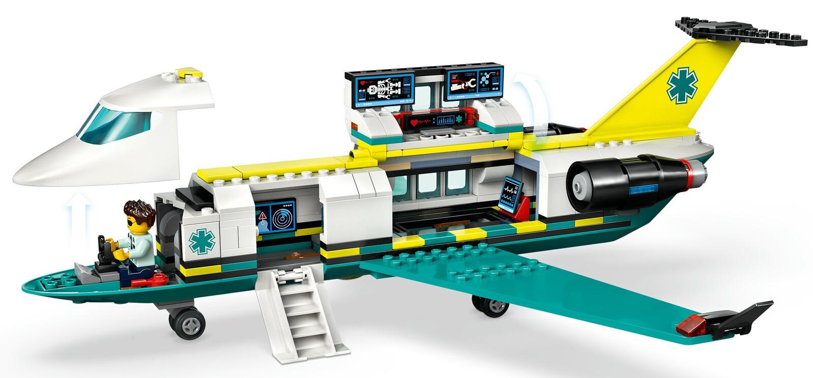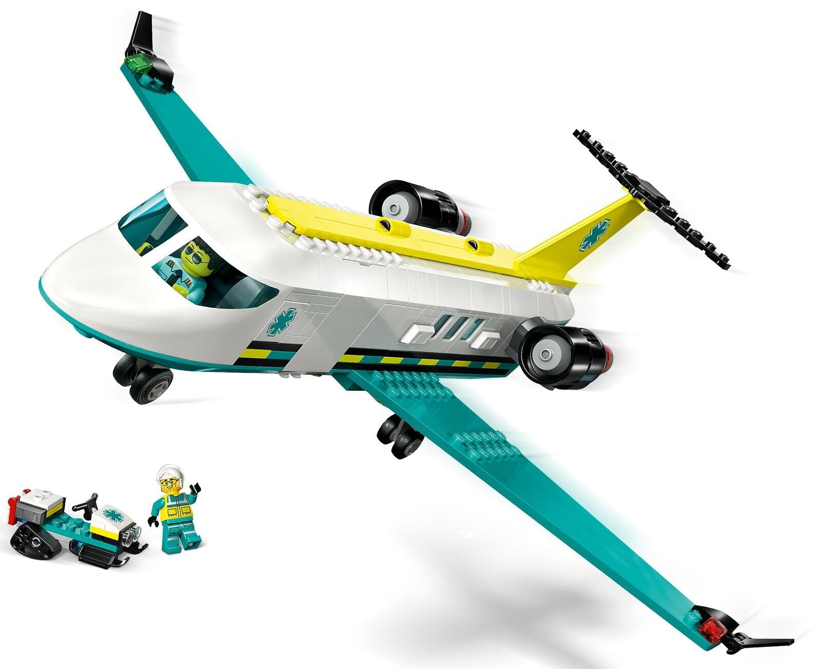 *Air ambulance model airplane playset*Send kids’ imaginations soaring with the LEGO City Emergency Air Ambulance Plane (60465) playset for ages 6 and over. This twin-engine plane is packed with cool features for fans of model airplanes, including fold-down boarding stairs and an onboard medical lab. The set also includes a snow scooter and a small airport scene with a toy windsock, plus toy first-aid accessories and pilot, doctor, paramedic and skier minifigures for action-packed rescue missions.This LEGO City airplane toy includes digital instructions in the LEGO Builder app. Here, kids can zoom in and rotate models in 3D, track their progress as they build, and explore and save other playsets. LEGO City sets offer action-packed build-and-play adventures for limitless creative fun. Add this Emergency Air Ambulance Plane playset to others (sold separately) from the LEGO City range for even bigger adventures. Set contains 403 pieces.*Features:*\* LEGO City air ambulance airplane toy for kids aged 6 and over\* Includes a toy airplane, snow scooter, small airport scene and 4 minifigures\* Kids open the aircraft model to access the cockpit and a fold-out medical lab\* Toy first-aid accessories include a stretcher, medical bag and syringe\* A fun Chrisas or birthday gift idea for model airplane fans aged 6 and over\* Add this toy plane playset to others (sold separately) from the LEGO City range\* LEGO City sets inspire imaginative play\* The toy plane in this 403-piece building set is over 37 cm (14.5 in.) wide*Specifics:**Item*: 60465*Pieces*: 403*Ages*: 6