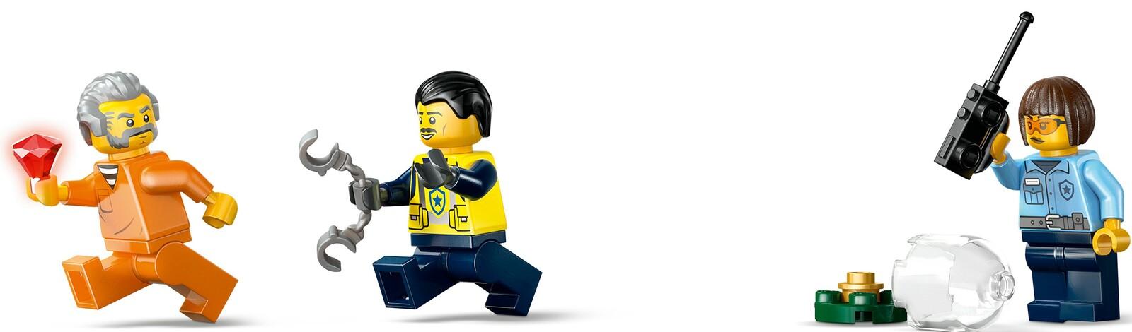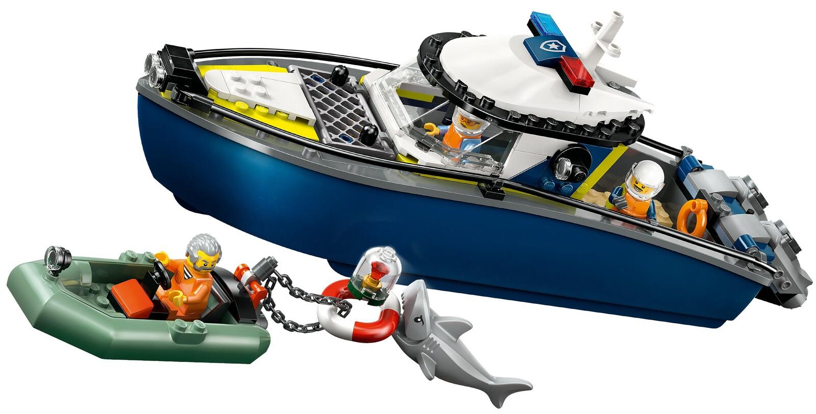 *High-speed police boat chase playset!*Budding everyday heroes will love this LEGO City Police Boat Chase (60456) playset. Perfect for builders aged 6 and over, this set features a toy police boat with twin outboard engines and an onboard holding cell, plus a crook’s power dinghy. Kids can float both boats on water and dive into exciting police-chase adventures with 2 police officers, a crook, a snappy shark and a stolen ruby!This LEGO City building set includes a step-by-step printed building guide and digital instructions in the LEGO Builder app – a digital building companion with intuitive zoom and rotate tools that enable kids to visualise models from all angles as they build.Your City, No Limits! LEGO City playsets offer action-packed build-and-play adventures for limitless creative fun. Add this LEGO police set to others (sold separately) from the LEGO City range for even bigger adventures! Set contains 264 pieces.*Features:*\* LEGO City Police Boat Chase playset for everyday heroes aged 6 and over\* Features a toy police boat and power dinghy, 3 minifigures and a shark figure\* Kids can float the toy police boat and crook’s power dinghy on water\* Accessories include a toy ruby, handcuffs, torch, chain and life buoy\* Give this set as a gift or any-day surprise for fans of toy boats aged 6 plus\* Add this model boat set to others (sold separately) from the LEGO City range\* LEGO City sets inspire kids to set their limitless imaginations free\* The police patrol boat in this 264-piece set measures over 31 cm (12 in.) long*Specifics:**Item*: 60456*Pieces*: 264*Ages*: 6