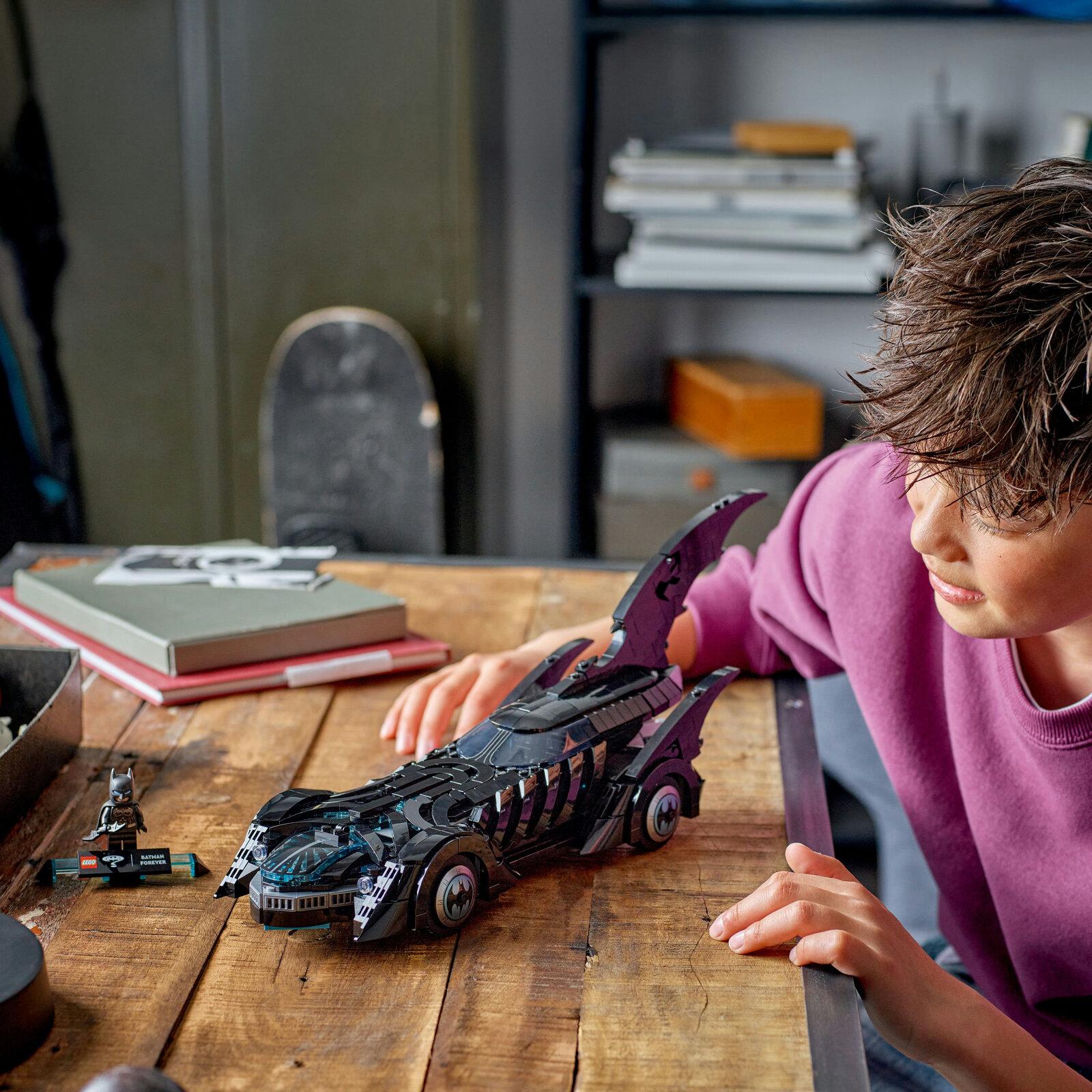 *Classic Batmobile gift from the Batman Forever film*LEGO DC Batman: Batman Forever Batmobile (76304) is a collectible building kit for fans of DC Super Heroes who are seeking a rewarding project to build, play with and display for all to admire. This creative LEGO DC Batman kids’ toy is a high-quality gift idea for boys and girls aged 12 and over.This authentic recreation of the iconic car from the Batman Forever film features a moulded windscreen, moving wheels, decorations and a cockpit that opens to reveal a detailed interior. The vehicle also come with a Batman minifigure with its own special stand. For added digital fun, builders can zoom in, rotate models in 3D and track their progress using the intuitive LEGO Builder app. Contains 909 pieces.*Features:** Batman Forever Batmobile is a super-hero car to build, play with and display* The Batmobile has a moulded windscreen, opening cockpit and a detailed interior* This realistic playset can also be displayed as bedroom decor* The collectible set comes with an information plate and a Batman minifigure* This distinctive Batmobile and minifigure is a great gift idea for Batman fans* Kids can zoom in and rotate sets in 3D using the intuitive LEGO Builder app* Check out the complete range of LEGO DC building toys, sold separately* The completed 909-piece building set measures over 41 cm (16 in.) long*Specifics:**Item*: 76304*Pieces*: 909*Ages*: 12+