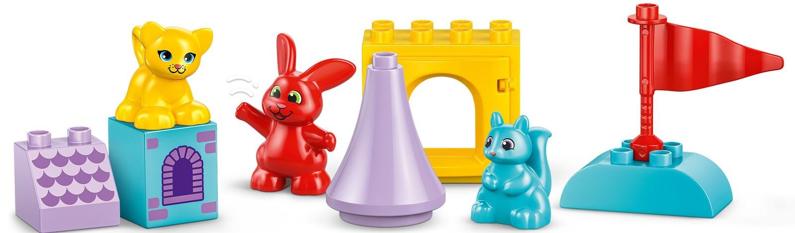 *Board game for preschool learning with 3 animal toys*Enjoy hours of family fun with your toddler as you help them learn through play with the LEGO DUPLO Hopsy’s Castle Game (10450) 2-in-1 board game. Toddlers embark on a LEGO DUPLO learning adventure, practicing counting and colour-sorting skills while playing one of 2 fun games.First toddlers use number and colours skills to build a creative castle toy. This fun family activity starts by each player picking a toy animal then spinning the arrow to see how many places on the board they can move. They then add to the model one brick with the colour they landed on. The game ends when all the characters arrive at the castle. In game 2, toddlers use colour sorting to see who can build the tallest toy tower. Players spin the arrow to see which colour brick they can add to their building toy. This educational toy features a raft of learning activities, such as understanding turn-taking, being imaginative and using fine motor skills to build creatively or working as a team to complete the castle. Contains 47 pieces.*Features:*\* 2-in-1 learn-through-play building toy brings learning fun to family activities\* Game includes a spinner toy, a play board, 3 toy animals and 40 bricks\* Board game comes with 2 fun ways to play\* Toddlers learn to take turns, work as a team and develop fine motor skills\* Birthday or special occasion gift for toddlers aged 3 and over\* This LEGO DUPLO set is tested to the max for a safe play experience\* LEGO DUPLO preschool kids’ learning toy sets toddlers on a learning adventure\* Board game measures over 32 cm (12.5 in.) long and 22 cm (8.5 in.) wide*Specifics:**Item*: 10450*Pieces*: 47*Ages*: 3