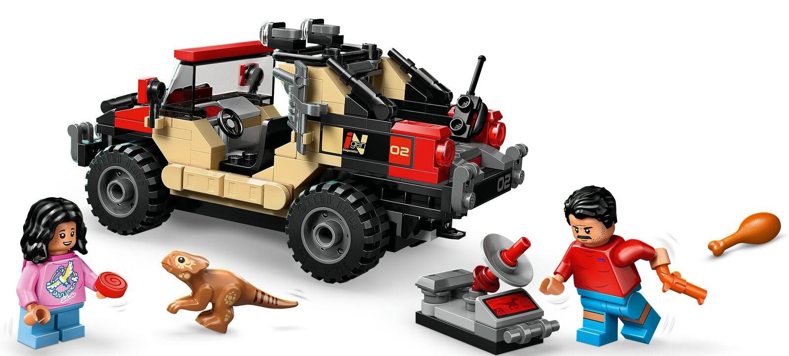 *LEGO Jurassic World dinosaur playset with 4 figures*Surprising adventures await kids and film fans aged 6 plus in this Raptor Off-Road Escape (76972) LEGO Jurassic World set, a dinosaur gift for boys and girls inspired by the Jurassic World Rebirth film. After building the dinosaur playset, kids can play out favourite film scenes or new stories with Reuben and Isabella Delgado minifigures, the Baby Dolores pet dinosaur figure and a Velociraptor figure with a movable jaw. The building kit includes a toy off-road vehicle and a tracking device, a bush with a ‘surprise’ push-scare effect that can be used with the Velociraptor during play – and much more.The LEGO Builder app guides young dinosaur fans on an intuitive building adventure, letting them zoom in and rotate models in 3D, save sets and track progress. The set works with other LEGO sets or LEGO Jurassic World building kits (all sold separately). Kids and grown-ups alike will love the ’surprise’ function that adds an extra dimension to the play experience. Set contains 285 pieces.*Features:*\* Treat fans of dinosaur toys with a set full of adventure and action play\* 2 dinosaurs, 2 minifigures, an off-road vehicle and a plant build\* Deploying the bush’s ‘surprise’ function makes the Velociraptor jump through it\* Includes a tracking device and other storytelling items for exciting action play\* Dinosaur gift for kids aged 6 plus who love hero discovery toys\* Step into an interactive way of building with the LEGO Builder app\* LEGO Jurassic World sets help kids explore their passion for animals and nature\* 285-piece set includes an off-road vehicle measuring over 15 cm (5.5 in.) long*Specifics:**Item*: 76972*Pieces*: 285*Ages*: 6