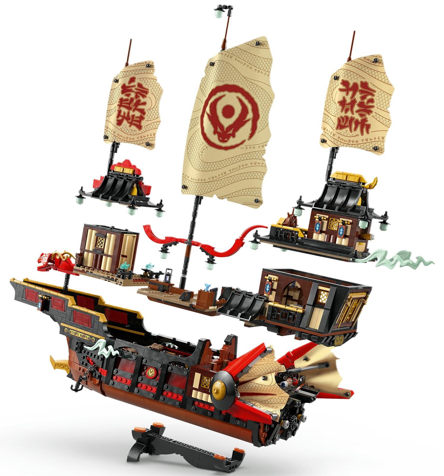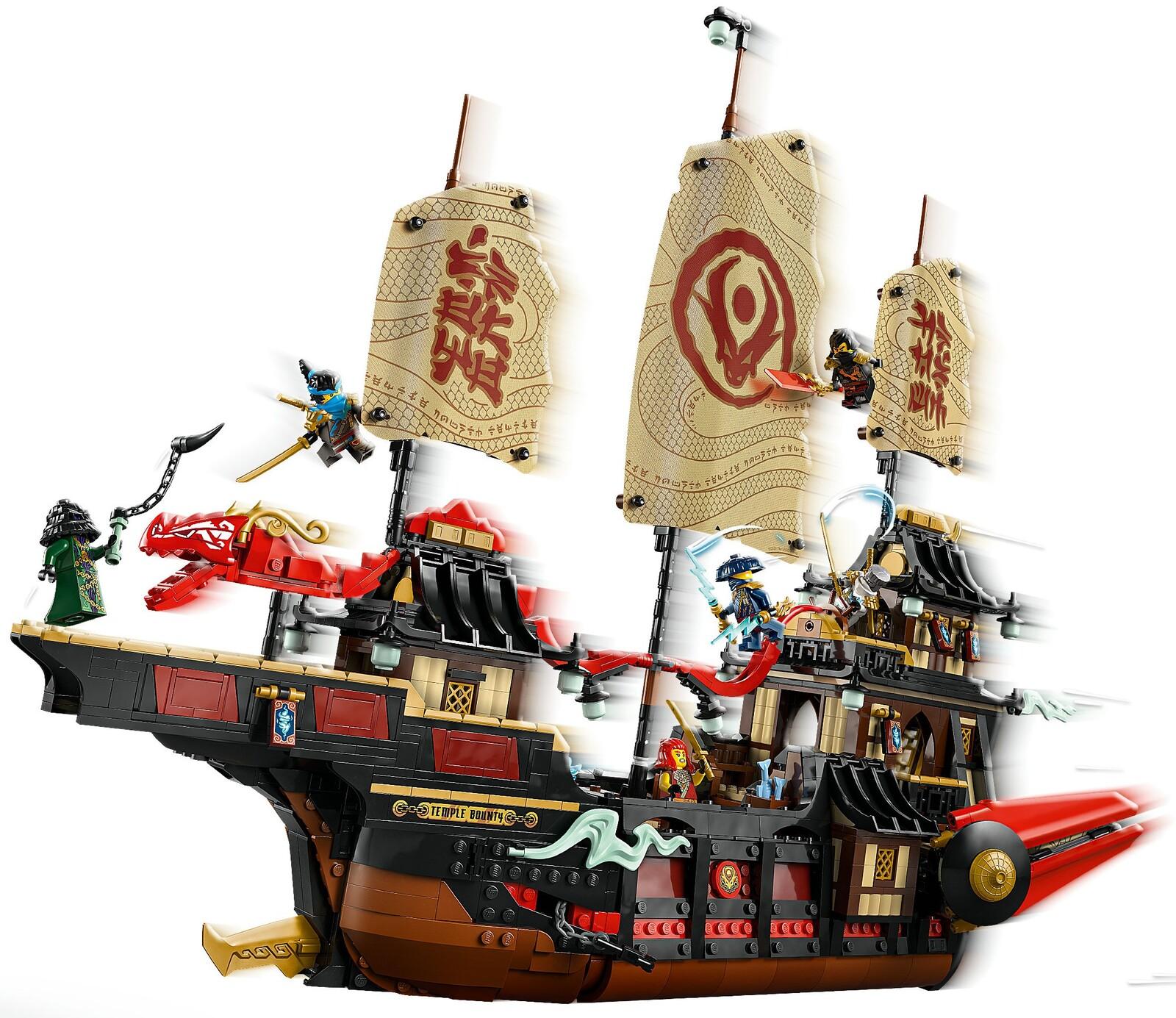 *LEGO NINJAGO The Temple Bounty ship toy with 6 minifigures*Older NINJAGO fans aged 14 and over will be thrilled to add The Temple Bounty (71848) ship toy to their collection of LEGO NINJAGO models. The large and highly detailed boat model is the latest in a line of famous NINJAGO ships and is packed with cool features and functions. It also comes with a display stand so fans can show it off on a shelf or bedside table.This interactive adventure playset includes everything ninja fans need to recreate stories from season 3 of the NINJAGO Dragons Rising TV show: a gear to open and close the sails, removable roofs and floors to gain access to the ship’s interior, which includes a sushi bar and a table in the main cabin that can be folded up to reveal a secret computer. The set also includes 6 minifigures: Zane, Cole, Wyldfyre, Nya, Rogue, and the villainous Zarkt, who are all armed with cool ninja weapon accessories. The ninja share a translucent reveal blade that helps to reveal a secret map on the captain’s table. Set contains 2,387 pieces.*Features:*\* Large and detailed NINJAGO ship toy building kit for display and storytelling\* Interactive features include moving sails and removable roofs and floors\* Includes a stand to display the NINJAGO boat model on a shelf or bedside table\* 6 minifigures include Zane, Cole, Wyldfyre, Nya, Rogue and Zarkt\* Premium gift for ninja fans aged 14 and over with a passion for storytelling\* Discover intuitive 3D building instructions in the LEGO Builder app\* LEGO NINJAGO sets let kids escape into a fantasy world\* 2,387-piece NINJAGO boat model measuring over 58 cm (22.5 in.) long*Specifics:**Item*: 71848*Pieces*: 2387*Ages*: 14