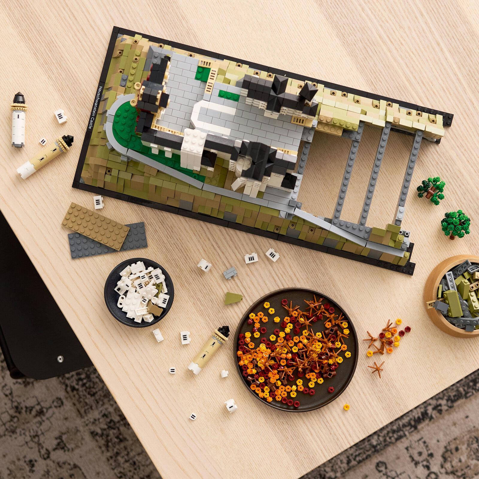 *LEGO adults building set of iconic Neuschwanstein Castle*Dive into your passion for iconic landmarks with this collectible 3,455-piece LEGO Architecture Neuschwanstein Castle (21063) building set for adults. Spend quality time building a display piece that also makes a great architectural gift for you or other history lovers. The build is full of surprises, from the exterior spires, turrets, courtyard, staircases and gabled roofs to the small interior builds. Plus, the foliage of the surrounding trees can be changed to depict a summer or autumn landscape. Serenity awaits as you build this detailed LEGO castle set.Enjoy updated building techniques and an intuitive, 3D building experience with the LEGO Builder app as you recreate a faithful representation of Neuschwanstein Castle. This premium set, packed with details, will appeal to you or any creative adult who loves European history, travel or the castles and palaces of Europe. It’s an impressive German-themed gift that any architecture or LEGO building fan would be proud to own and display.*Features:** Iconic Neuschwanstein Castle model kit for adult fans of history or travel* Recreate the castle with towers, courtyards, exterior landscape and more* The leaves on the trees can be changed to display summer or autumn foliage* Discover small, detailed interiors as you build the complete model* Architecture gift for history or travel lovers, LEGO building set fans or you* Step into an interactive way of building with the LEGO Builder app* Part of a collection, sold separately, for adults who enjoy creative activities* 3,455-piece Neuschwanstein Castle collectible measures over 46 cm (18 in.) wide*Specifics:**Item*: 21063*Pieces*: 3455*Ages*: 18+