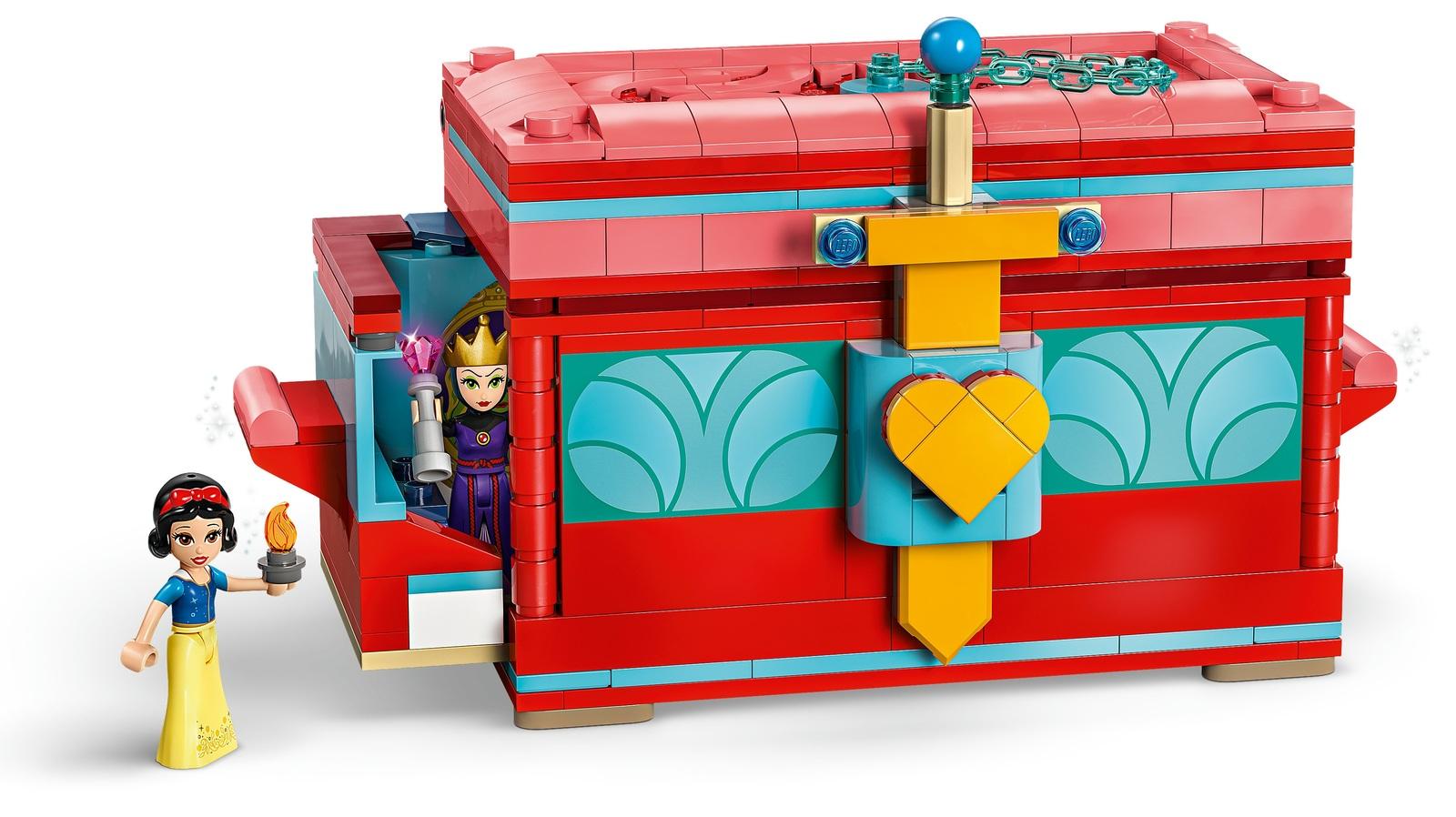 *A buildable Snow White toy playset for display*Delight kids and Disney fans aged 6+ with the premium gift of this LEGO Disney Snow White’s Jewellery Box (43276) buildable toy playset. It features a box with an opening lid and handles on each side that pull open to reveal hidden rooms, a sword and chain lock, Snow White and the Evil Queen LEGO Disney mini-doll figures and a colourful bracelet with plenty of decorating elements to design, wear or share. This Disney construction set helps boost children’s confidence and inspire creativity as they play with the secret rooms and decorate the bracelet any way they like.The model also works with other building sets (sold separately) in the LEGO Disney range. Kids and grown-up fans alike will appreciate all the details in the building set and can enjoy creating one of the latest toys together as a fun Disney gift. Kids also get an easy and intuitive building experience with the LEGO Builder app. They can zoom in and rotate models in 3D, save sets and track their progress.*Features:** Inspire imaginations with a useful building set that sparks creative play* A jewellery box, 2 LEGO Disney mini-doll figures and a play bracelet* A creative buildable toy to kick-start kids’ imaginations with lots of details* Extra story starters inspire new adventures and role-play possibilities* A fun special-occasion Disney gift idea for kids aged 6+* Download the LEGO Builder app for interactive 3D building instructions* LEGO Disney models and sets help build life skills through play and fun* 358-piece buildable set with a jewellery box measuring over 17 cm (6.5 in.) wide*Specifics**Item*: 43276*Pieces*: 358*Ages*: 6+