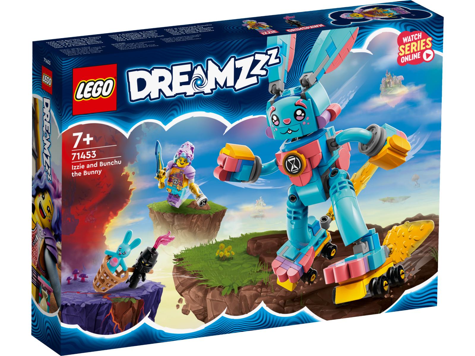 *Help Izzie save her cuddly toy bunny Bunchu from an evil Grimspawn with this LEGO® DREAMZzz™ Izzie and Bunchu building toy set for kids aged 7+*Let kids aged 7+ jump into the action of the dream world with this LEGO® DREAMZzz™ Izzie and Bunchu the Bunny (71453) building toy set. Based on an exciting storyline from the TV show, the set lets kids help main character Izzie create a large version of her favourite cuddly toy to help rescue the stuffed animal, which has been kidnapped by a nightmare Grimspawn. 1 set, 2 ways to build The large living version of Bunchu has a fully articulated neck, arms and legs.When building it, kids can use their imaginations and follow story-led building instructions to choose between equipping it with roller skates and gloves or bee wings and a stinger. Fantastic minifigure A detailed minifigure of Izzie helps bring the action to life. Izzie comes with accessories including armour, a sword and an hourglass. Figures of the Grimspawn and a small Bunchu are also included so kids can recreate the entire story.*Features:** Bring Bunchu to life – Kids can enjoy imaginative play with this LEGO® DREAMZzz set* Fully articulated – Bunchu has a fully articulated neck, tail, arms and legs* Making it easy for kids to pose it and recreate different scenes* 2 ways to build – The set comes with several elements, letting kids choose builds* Equip Bunchu with roller skates and gloves or a bee stinger and wings* The toy set comes with a minifigure of Izzie, and her accessories* A figure of the original Bunchu the bunny toy is included in the playset* The set is designed for kids aged 7 and over, who can spend hours of fun* Bunchu stands over 19 cm (7.5 in.) tall without the rocket roller skates* The set features story-led building instructions, which are also available digitally*Specifics:**Item:* 71453*Pieces:* 259*Ages:*7+