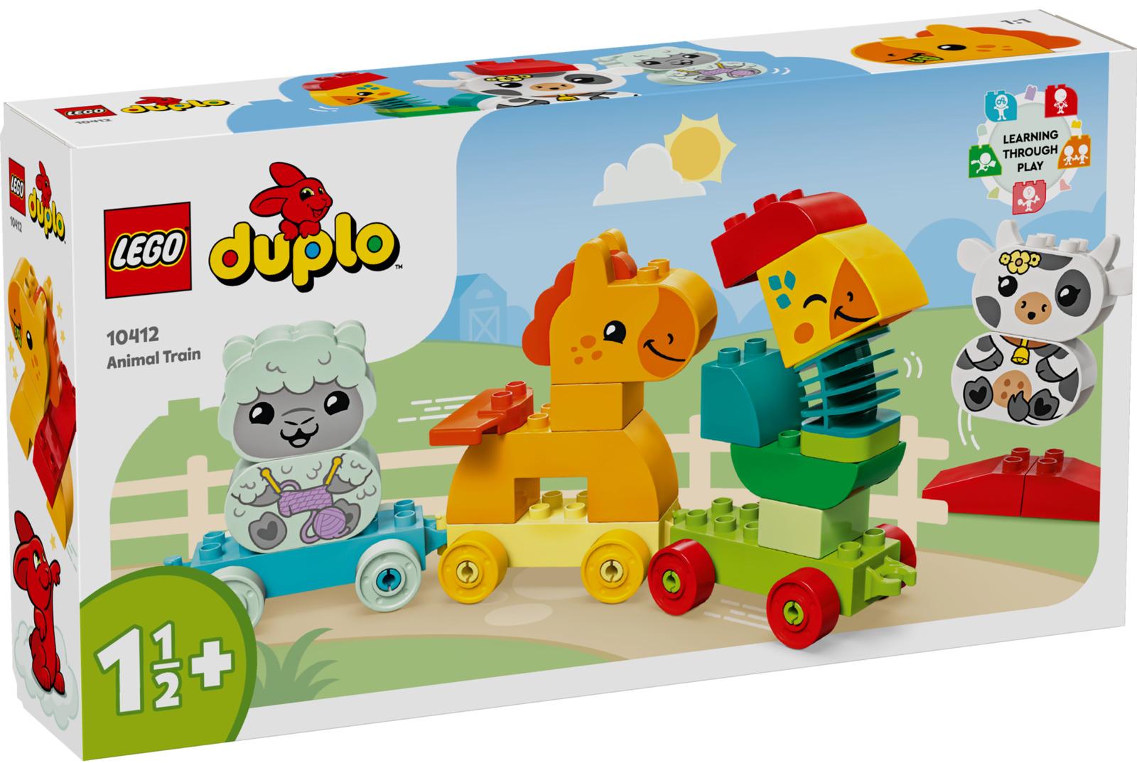 *Introduce toddlers to color-matching with a LEGO® DUPLO® pull-along train set that helps them develop fine motor skills.*Know a youngster who loves creative play and nature toys? Introduce toddlers aged 18 months and up to color-matching play with the LEGO® DUPLO® My First Animal Train (10412) set. This preschool kids’ learning toy comes with 4 cute, buildable animals toys – a rooster, horse, lamb and cow – that transport toddlers on a journey of fun role play. Toddlers learn problem-solving skills as they follow the cards to construct the animals then match them to the colored train toy carriages. This vehicle toy also includes 2 extra bricks to let kids express their creativity as they build and rebuild the animals into toy figures of their own invention.Playful features, such as the rooster’s flexible neck and the toy train carriages that connect help hone a toddler’s motor skills. LEGO DUPLO animal toys for toddlers put open-ended fun, self-expression and joyful exploration into young children’s hands while parents share their child’s precious developmental milestones.*Features:** This LEGO® DUPLO® My First Animal Train set is for ages 18 months and up* Includes 4 buildable animals and 3 detachable carriages for creative role-play* Learn fun colour-matching skills as they pair the animal with its coloured carriage* This train toy for toddlers comes with fun functions that help develop fine motor skills* Connect the carriages and wobble the rooster’s flexible neck.* Give this playset as a present or any-day treat to toddlers aged 18 months and up* Toddlers follow the cards to build the animal toys* Use the extra bricks for constructing critters of their own invention* Measures 17 × 43 × 6 cm*Specifics:**Item:* 10412*Pieces:* 19*Ages:* 1½+