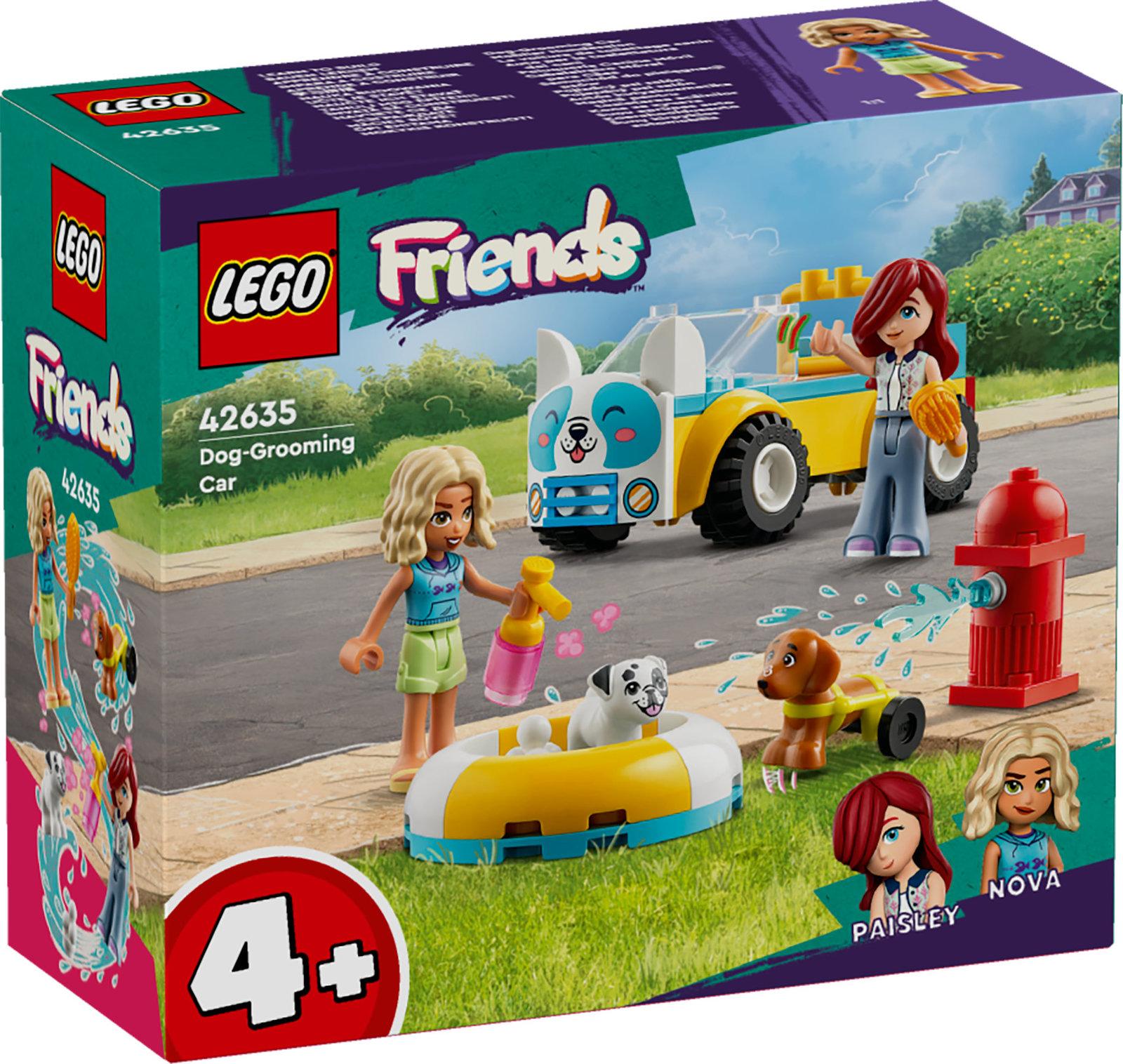 *A fun building toy for kids that makes a great gift idea*The LEGO Friends Dog-Grooming Car (42635) vehicle playset makes a great gift idea for kids aged 4+ who love animal care toys. Girls and boys can enjoy hours of imaginative play with the 2 mini-dolls, 2 dog figures, a buildable car, pool and lots of pet care accessories. Little animal-lovers can have lots of fun helping Paisley and Nova wash and groom the 2 pups – Pickle and Juno. They’ll love putting the dogs into the pool for a bath. Use the shampoo and brushes to get the pups in tip-top condition – Pickle loves to get bubbles on his nose!Once the dogs are clean, load the accessories back into the car, ready to drive to the next customer. LEGO 4+ kids’ toy sets are designed to give kids a quick and fun building experience. They come with a helpful Starter Brick – a sturdy base on which kids create the scene. Let the LEGO Builder app guide you and your child on an intuitive building adventure, allowing you to zoom in and rotate models in 3D, save sets and track progress.*Features:** Vehicle playset with Dog-Grooming Car for kids aged 4+* Kids learn to build and tell the story as they help wash and groom the pups* Comes with LEGO Friends characters Paisley and Nova, plus dogs Pickle and Juno* Buildable car with toy dog-grooming accessories* A gift for kids who love animal care toys* Check out other LEGO Friends sets (sold separately) for more friendship stories* 60-piece LEGO set with a car measuring over 4 cm (1.5 in.) high*Specifics**Item*: 42635*Pieces*: 60*Ages*: 4+
