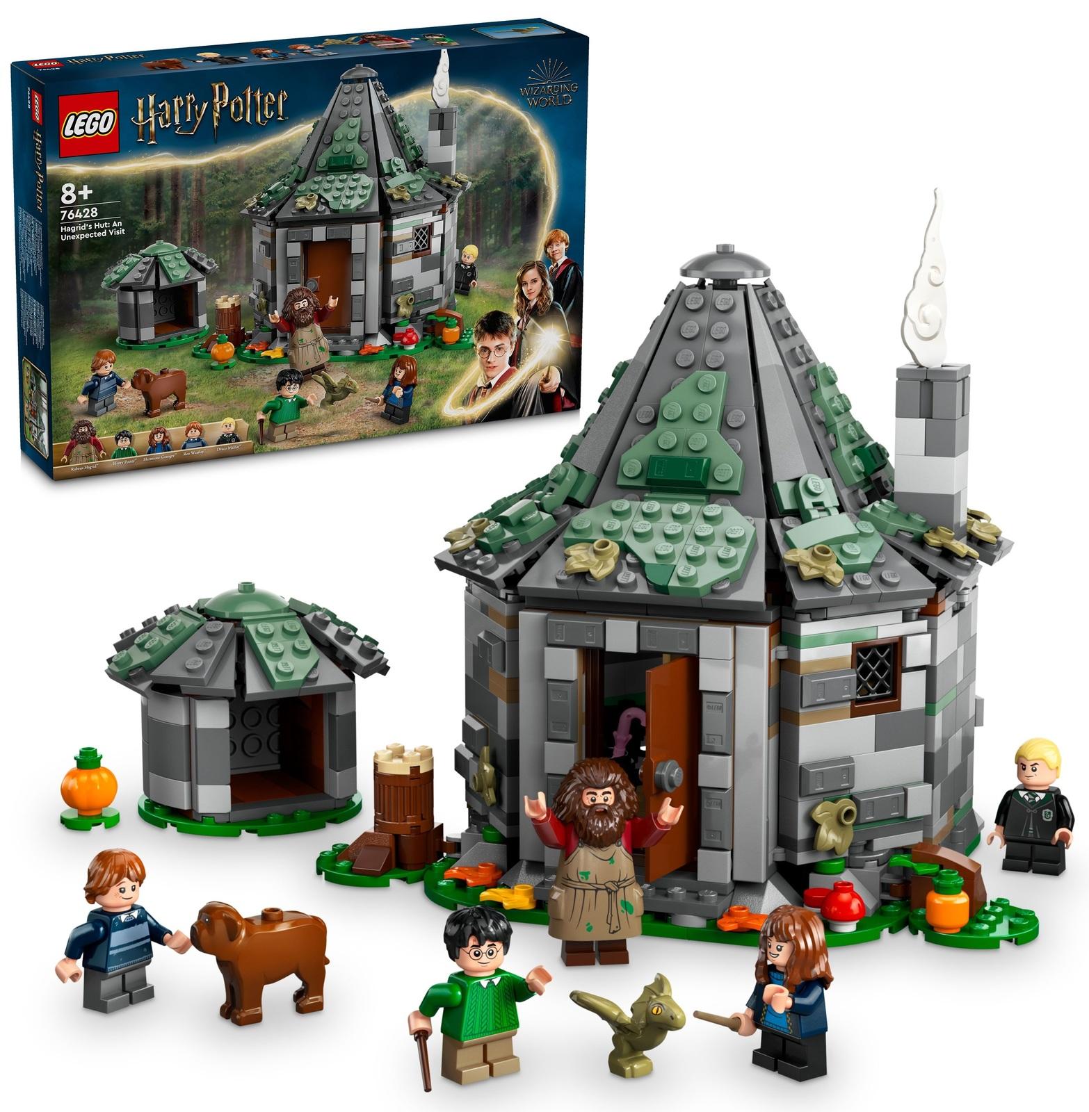 *Magical fun for kids with this Hagrid’s hut building toy*Relive Harry Potter™ and friends’ unexpected visit to Rubeus Hagrid’s hut and role-play other Wizarding World adventures with this LEGO® Harry Potter fantasy toy playset for kids (76428). It features a buildable model of Hagrid’s hut, which has a removable roof and opens out for easy access to the detailed interior – find the reclining armchair for Hagrid™ to sit on, a dragon egg element, 2 of 14 collectible Hogwarts™ portraits, and more inside. A buildable kennel outside for Hagrid’s pet, Fang, adds to the creative play possibilities.This buildable house kit of an iconic Harry Potter location features 5 LEGO minifigures – Harry Potter, Hermione Granger™, Ron Weasley™, Draco Malfoy™ and Rubeus Hagrid, plus Norbert and Fang toy figures. If you’re looking for the best Harry Potter birthday gift idea for kids aged 8 and over, this Wizarding World building toy is great for inspiring independent play and is fun to build and play with as a group activity.*Features:** LEGO® Harry Potter™ fantasy toy playset featuring Hagrid’s hut* 7 LEGO® Harry Potter™ characters, including Norbert and Fang figures* This detailed buildable house toy for kids opens out for easy play* The set includes 2 of 14 collectible Hogwarts™ portrait elements* Fun treat or birthday gift for girls and boys aged 8 years old and over* Discover intuitive building instructions in the LEGO® Builder app* Part of a large range of LEGO® Harry Potter™ buildable Wizarding World toys* Hagrid’s hut measures over 17 cm (7 in.) high*Specifics**Item*: 76428*Pieces*: 896*Ages*: 8+