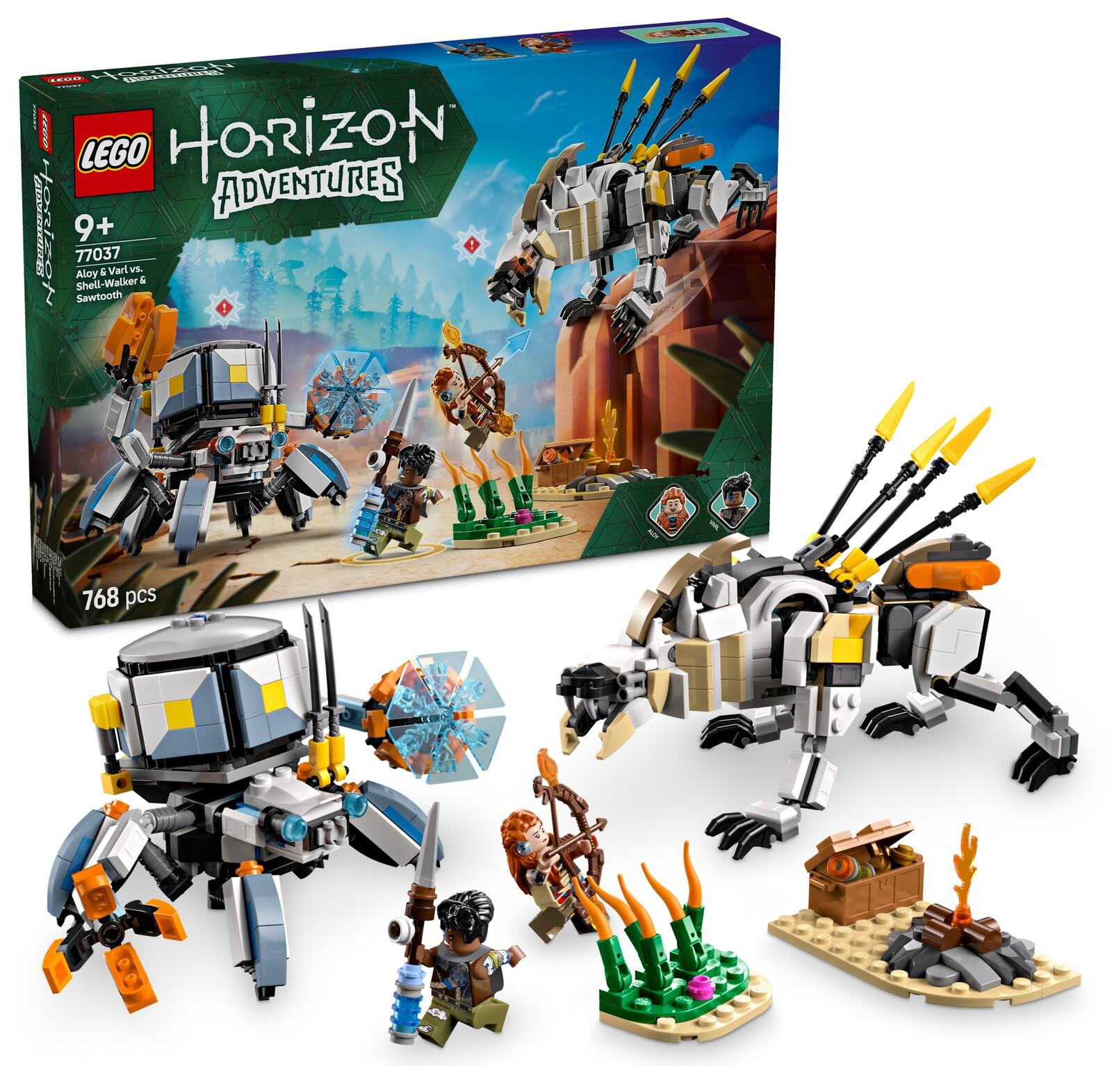"*LEGO Horizon Adventures collectable video-game figures set*LEGO Horizon Adventures Aloy & Varl vs. Shell-Walker & Sawtooth (77037) is a collectible fantasy gaming toy for kids aged 9 and over. Based on the LEGO Horizon Adventures video game, this machine-monster toy LEGO gaming set includes 2 minifigures: Aloy and her loyal ally Varl. Aloy carries a bow and Varl carries a spear.Each weapon features upgrades that can be added to enable the fire, chill or shock methods of attack – just like in the video game. 2 buildable robot-creature toys are also included. Shell-Walker has posable legs and arms, opening claws and a detachable cargo pod and energy shield. The fully articulated Sawtooth has opening jaws, a swivelling torso and a posable neck, head and legs. Tall reeds, a campfire, treasure chest and more are included to inspire imaginative play. Check out the LEGO Builder app for added digital fun.*Features:** LEGO Horizon Adventures buildable playset for kids aged 9 and over* LEGO Horizon Adventures Aloy and Varl minifigures with a bow and a spear* Aloy and Varl battle 2 machine monsters in this LEGO adventure toy* Shell-Walker and Sawtooth are fully jointed for dynamic adventures* This LEGO gaming set for kids makes a great Horizon toy gift* Kids can zoom in and rotate sets in 3D using the intuitive LEGO Builder app* This LEGO Horizon Adventures set gives fans a new way to play the game* The Sawtooth machine in this 768-piece set measures over 18 cm (7 in.) high*Specifics:**Item*: 77037*Pieces*: 768*Ages*: 9+"