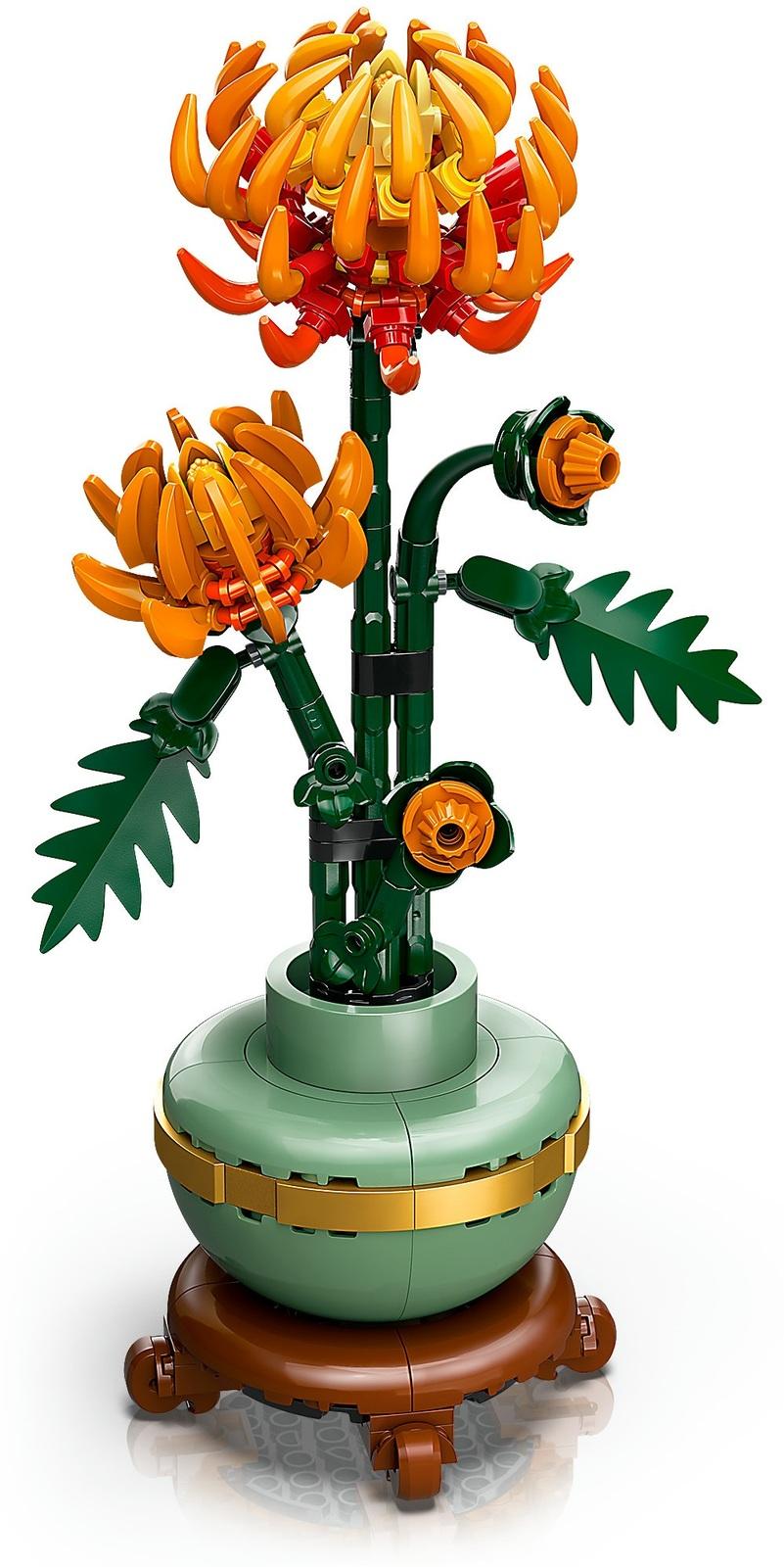 *LEGO Botanicals Chrysanthemum home office decor building set*Take time out with the LEGO Botanicals Chrysanthemum flower decor building set for adults (10368). The chrysanthemum is a popular motif in traditional art and represents autumn as part of the classic quartet of beautiful plants known as the Four Gentlemen. Indulge in a mindful building project or treat a loved one to this timeless floral display – a perfect gift idea for any occasion.This detailed replica, with posable leaves and petals, captures the vivid orange flower in bud, blooming and in full bloom and comes with a pastel-green flowerpot decorated with a golden band and set on a wood-effect plinth. Easy to assemble, the model chrysanthemum plant makes an elegant centrepiece for any space and can be displayed alongside other sets from the LEGO Botanical Collection (sold separately). Discover a space for relaxation with the inspiring range of LEGO creative building projects designed for adults. A digital version of the building instructions is available in the LEGO Builder app.*Features:** LEGO Botanicals Chrysanthemum flower decor building set for adults* Chrysanthemum plant in a pastel-green and gold pot with a wood-effect plinth* This LEGO set depicts a chrysanthemum captured at various stages of flowering* Zero-maintenance faux flower home decor display suitable for any space* A mindful birthday gift for fans of LEGO building sets, home decor and flowers* The LEGO Builder app includes a digital version of the building instructions* Part of the LEGO Botanical Collection for adults* This 278-piece model measures over 26 cm (10.5 in.) high*Specifics**Item*: 10368*Pieces*: 278*Ages*: 18+