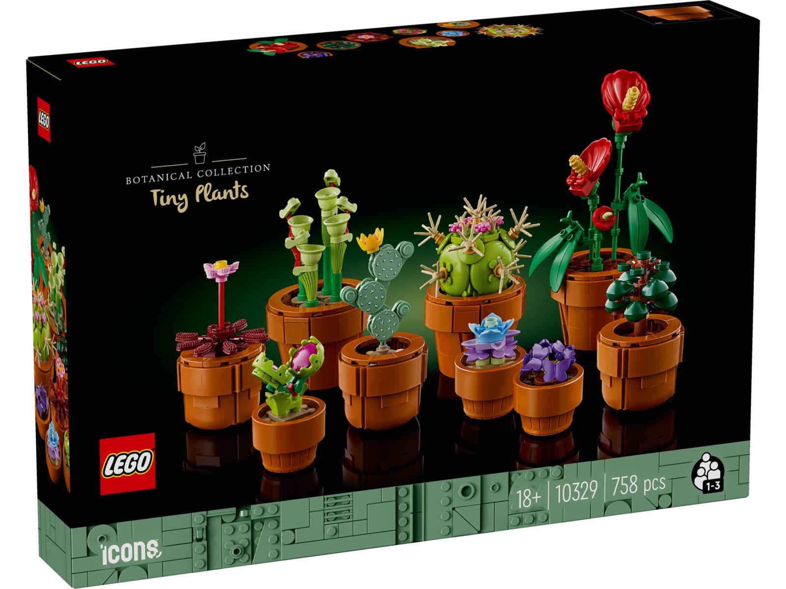 *Create an elegant floral display of 9 plants for your home or office desk with the LEGO Botanicals Tiny Plants home decor building set for adults.*Create an elegant, zero-maintenance floral display with this home decor-building set for adults. The LEGO Botanicals Tiny Plants (10329) building project features flora based on arid, tropical and carnivorous species, each nestled in a buildable, terracotta-coloured container. Enjoy time out crafting each of the 9 plants before displaying them in your home or office. This set makes a great gift for plant lovers and is the perfect project to enjoy with friends and family.Suitable for both new and advanced builders, it includes different models for easy, medium, and advanced levels of building complexity. The LEGO Builder app features a digital version of the building instructions included with this set. Discover a space for relaxation with buildable models from the LEGO Botanical Collection, part of the inspiring range of LEGO building sets designed specifically for adults.*Features:** A relaxing building experience with the LEGO Botanicals Tiny Plants building set* Includes all you need to craft 9 plants based on arid, tropical and carnivorous species* Each nestled in a buildable, terracotta-colored plant pot* Choose different models for easy, medium and advanced levels of building complexity* Add a self-sufficient splash of colour to any space with this zero-maintenance display* The LEGO Botanicals Tiny Plants building set makes a great birthday or any-day gift idea* Includes some plant-based plastic that’s made using sustainably sourced sugarcane* The tallest plant (including its container), measures over 16 × 10 × 6 cm*Specifics:**Item:* 10329*Pieces:* 758*Ages:* 18+