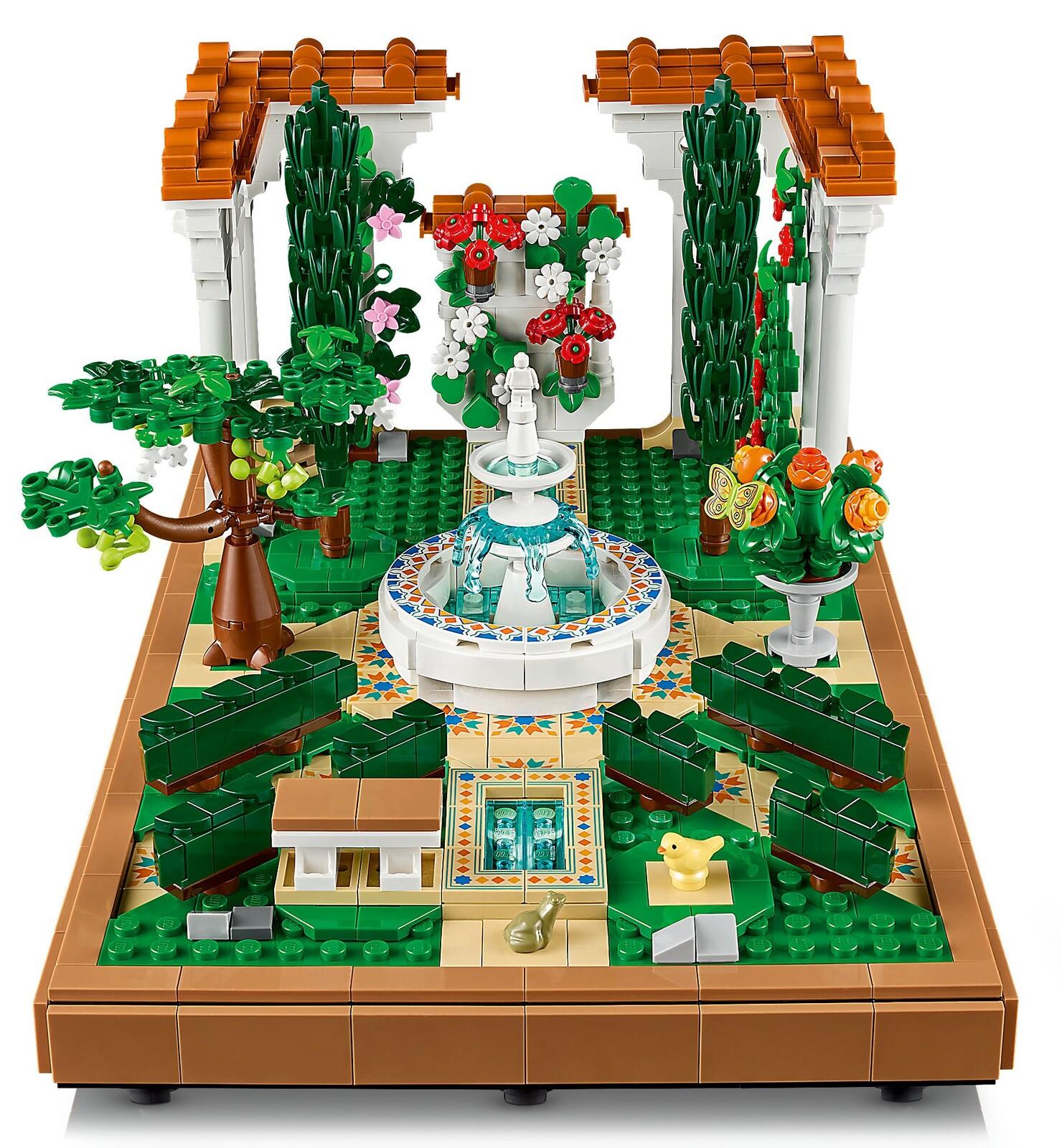 *Fountain garden building set for adults*Enjoy a mindful project with the LEGO Icons Fountain Garden (10359) home and office decor building set for adults. Unwind as you create each intricate detail, rearrange the trees, flowers and pergolas and move around all 4 corners of your garden to achieve that perfect look.Inspired by the beauty and diversity of landscape architecture, this addition to the Gardens of the World collection features a tiered fountain, an ornate lavabo, decorative tiled pathways and flowered vines that adorn white columned pergolas with red-tile roofing. The garden includes a grapevine in bloom, 2 cypress trees, a red geranium, white petunias, red hibiscus, pink bougainvillea and marigolds, plus bird, frog and luna moth animal figures. Discover a space for relaxation with the wide range of LEGO building sets designed specifically for adults (sold separately). The LEGO Builder app features a 3D digital version of the building instructions included with this LEGO garden construction kit.*Features:** LEGO Icons Fountain Garden building set for adults* LEGO garden with a tiered fountain, lavabo, trees, plants and animal figures* Reconfigurable garden display for the home or office* A fun birthday or Christmas gift for gardeners and adult fans of LEGO building* Create a colourful centrepiece with this home and office decor construction kit* The LEGO Builder app includes a 3D digital version of the building instructions* Discover the inspiring range of LEGO creative building sets for adults* This 1,302-piece LEGO garden model measures over 29 cm (11.5 in.) wide*Specifics:**Item*: 10359*Pieces*: 1302*Ages*: 18+