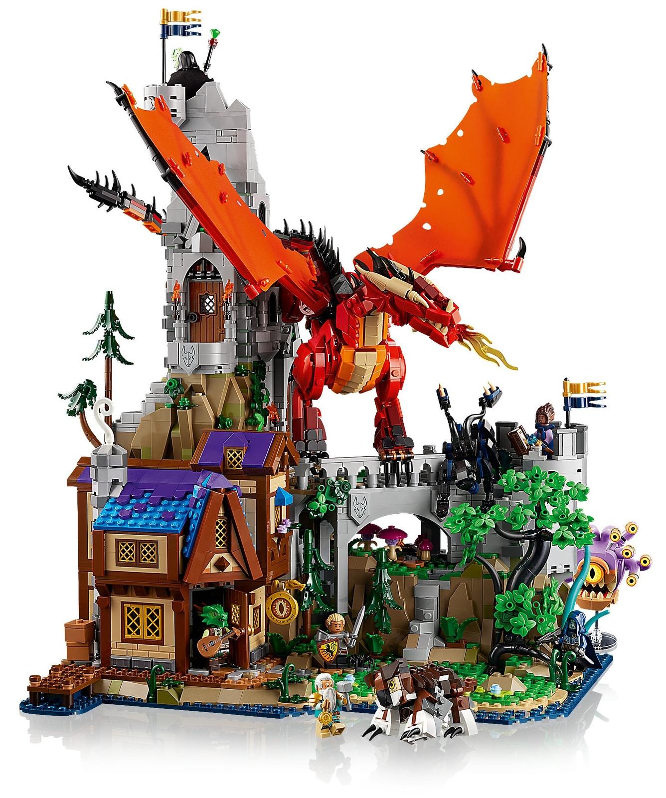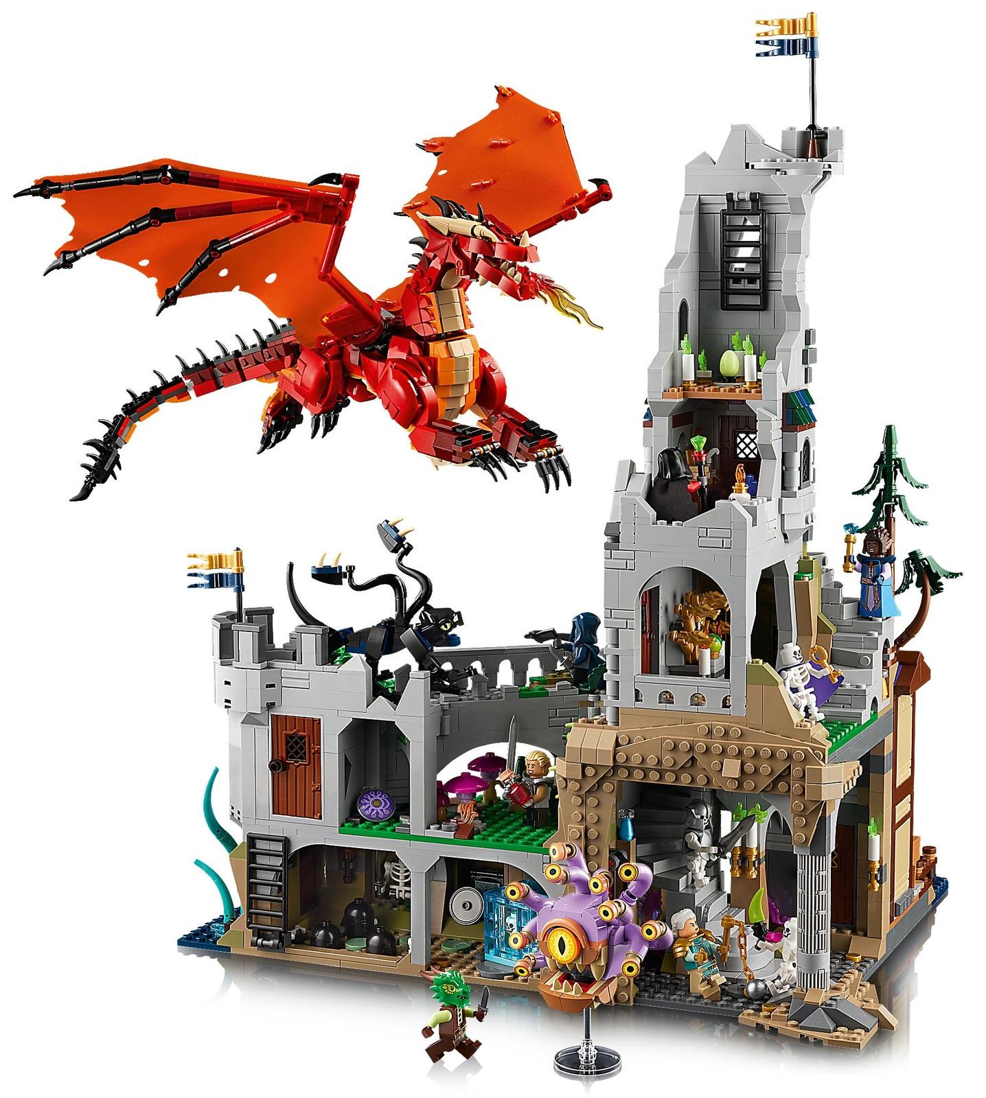 *Collectible play-and-display model for D&D fans*Be transported to the Forgotten Realms with this LEGO Ideas Dungeons & Dragons: Red Dragon's Tale set (21348) for play and display. A nostalgic D&D fantasy gift for creative adults, it features a buildable tavern with a removable roof and an upper level for easy access, a dungeon and a tower, plus a posable Cinderhowl the Red Dragon figure that can be wrapped around the tower. The set also includes 6 LEGO minifigures – 4 brave adventurers, an innkeeper and a dragonborn – plus lots of monster figures, including a beholder, an owlbear and a displacer beast. Each minifigure, apart from Alax Jadescales, has an alternate head so you can choose your own look.This building set for adults has been created in collaboration with Wizards of the Coast and includes a custom campaign written by the D&D game team! Download the campaign to begin your quest. There are magical items and iconic Easter eggs to be discovered everywhere… but beware of traps, monsters and that huge red dragon.*Features:** The first-ever LEGO brick model set in the D&D® Forgotten Realms* 6 LEGO minifigures and assorted monster figures, including a beholder* Play out a unique downloadable campaign developed with Wizards of the Coast* A tavern, tower and dungeon, a posable Cinderhowl the Red Dragon figure and more* Nostalgic gift idea for creative adults who love DUNGEONS & DRAGONS games* Separate instructions for parts of the set so you can build with friends* LEGO Ideas sets are created by fan designers and voted for by LEGO fans* This playful D&D room decor for the home measures over 48 cm (19 in.) high*Specifics**Item*: 21348*Pieces*: 3745*Ages*: 18+*Claim your exclusive rewards with [D&D Beyond](https://dndbeyond.com/)!*Celebrate 50 years with a special LEGO gift. Embark on the Red Dragon's Tale, an unforgettable adventure filled with fantasy and fun. With these exclusive dice, frames, and backdrops, your epic adventure is just a dice roll away!Please visit the official [D&D Beyond](https://dndbeyond.com/) site to claim today!*Please Note: A sign-up is required for download. D&D Beyond is not affiliated with Mighty Ape.*