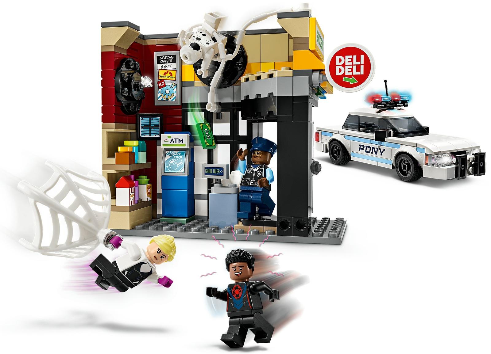 *LEGO Spider-Verse: Miles Morales vs. The Spot portal action*Spider-Verse: Miles Morales vs. The Spot (76311) is a high-quality buildable toy for fans of Marvel Studios’ Spider-Man: Across the Spider-Verse film aged 9 and over. This build-and-play adventure LEGO set makes an ideal gift for young Super Heroes, especially Marvel fans and kids who enjoy buildable, hands-on adventure toys. The Spider-Man playset comes with 4 minifigures: Miles Morales, The Spot, Gwen Stacy and Officer Jefferson.The shop has an exploding-wall feature that allows the cash machine to be removed. Accessories include a long, flexible web rope and a flexible web that is large enough to encase a minifigure. The police car opens to allow 2 minifigures to be placed inside. For added digital fun, builders can zoom in, rotate models in 3D and track their progress using the fun, intuitive LEGO Builder app.*Features:** Buildable playset based on Marvel Studios’ Spider-Man: Across the Spider-Verse* Includes Miles Morales, The Spot, Gwen Stacy and Officer Jefferson minifigures* An exploding-wall feature allows the cash machine to be stolen by The Spot* The buildable police car opens to allow 2 minifigures to be placed inside* Spider-Man gift idea for kids who like Super Heroes, vehicles and Marvel films* Kids can zoom in and rotate sets in 3D using the intuitive LEGO Builder app* LEGO Marvel building sets put endless Super Hero adventures into kids’ hands* The 375-piece buildable toy’s shop stands over 11 cm (4.5 in.) high*Specifics:**Item*: 76311*Pieces*: 375*Ages*: 9+