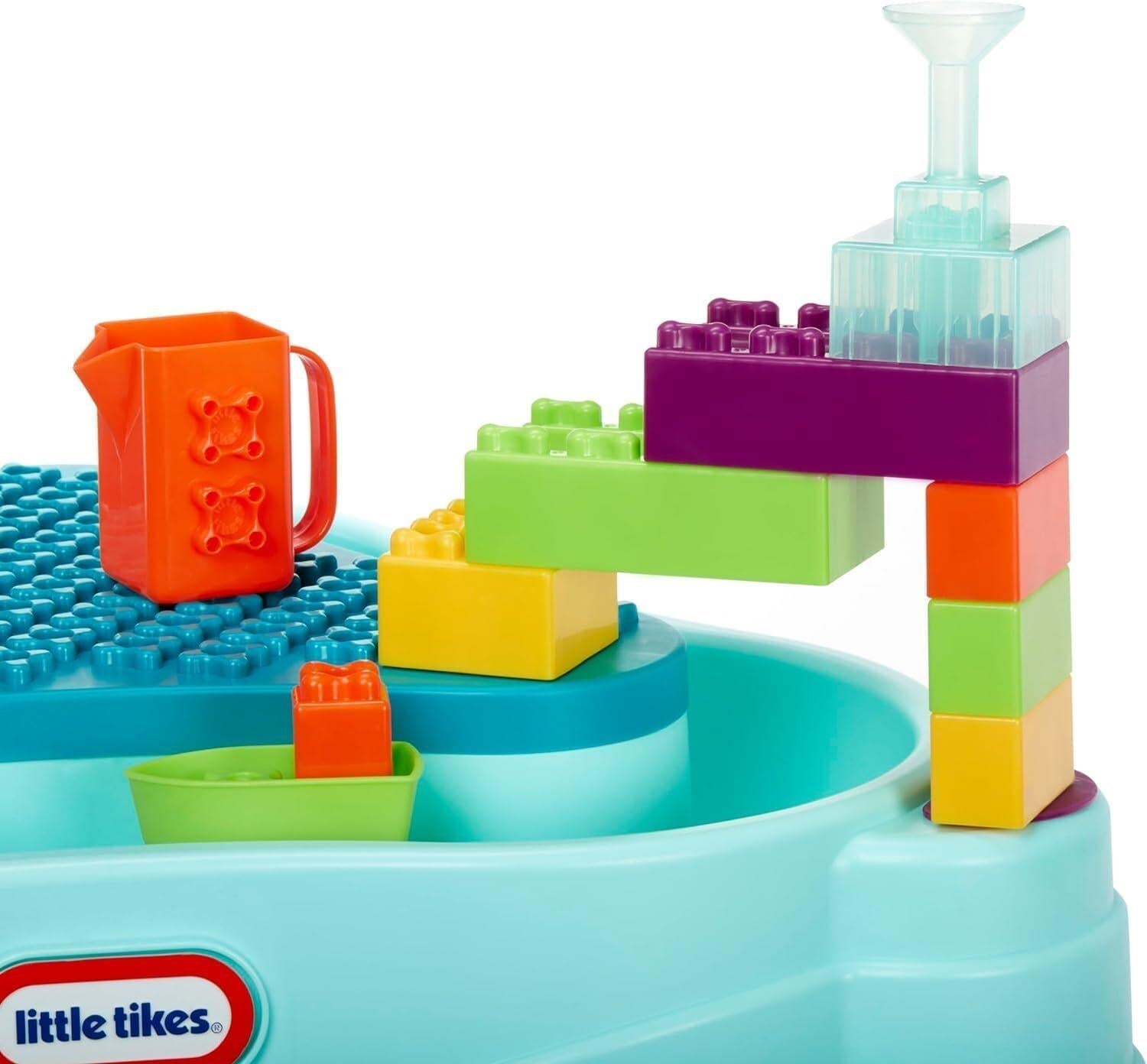 *Little Tikes: Build & Splash Water Table*Little builders can play year-round with the Little Tikes Build & Splash Water Table, a construction play table and water table, all-in-one! With over 25 pieces and room for all to play, toddlers and kids can enjoy colorful blocks, funnels, pipes, elbow pipes, boats and a pitcher. This wet/dry play set is perfect for both indoor and outdoor excitement, all year long. ​This dynamic playset includes removable legs for optional fun on the floor, a must-have set for grow-with-me-play. Enjoy easy cleanup and storage with the removable center building surface and additional mesh storage bag. Encourage the development of motor skills while using imagination to build and play.​ Assembly required. Ages 1–6.*Features:** Year-round play – wet/dry table is perfect for indoor and outdoor fun.* Accessories – 25+ accessories include blocks, funnels, pipes, boats and a pitcher.* Easy Storage – Removable center building surface for housing the 25+ accessories.* Grow-with-me Play – 3 detachable legs for optional floor play.\*Unique Block Design – Blocks connects to other junior blocks.* Fine Motor Skils – Encourages motor skills while building anything you can imagine*Suitable for Ages 1–6*