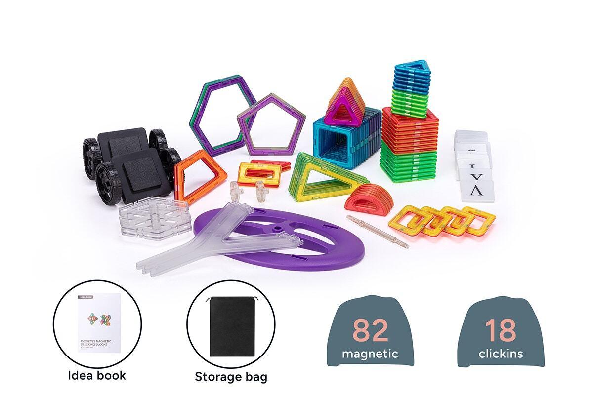 *_136 Piece Kids Magnetic Building Block Tile Set_**_Unlock endless creativity and learning_*With the 136 Piece Kids Magnetic Building Block Set. Whether building solo or with friends, children can explore endless designs while developing cognitive and social skills in a fun and safe environment.* *_Interactive group play._* Fosters teamwork, communication and social interaction.* *_Promotes STEM learning._* Encourages creativity, problem-solving and spatial awareness.* *_Boosts motor skills._* Helps improve fine motor control and hand-eye coordination.* *_Non-toxic materials._* Made from ABS plastic, safe for children.* *_Includes storage bag._* Keeps blocks organised for easy clean-up and storage.* *_Suitable for ages 3+._* Designed for young creators and builders.*_Inspire creativity and STEM learning_*The 136 Piece Kids Magnetic Stacking Blocks Set promotes foundational learning in science, technology, engineering and math. Children can explore various shapes and designs, helping to develop spatial awareness, problem-solving skills and creativity, all through play.*_Develop motor and cognitive skills_*As children connect and stack the blocks, they refine their fine motor skills and hand-eye coordination. Recognising shapes, colours and patterns also helps to boost cognitive abilities, making these blocks a powerful tool for both fun and learning.*_Perfect for interactive group play_*These magnetic blocks encourage group play, fostering important social skills like communication, teamwork and problem-solving. Ideal for siblings or friends, they create opportunities for kids to work together, building structures and memories.*_Safe and durable for young builders_*Crafted from non-toxic, food-grade ABS plastic, the blocks are designed for durability and safety. Parents can rest easy knowing that their children are playing with high-quality, child-safe materials.*_Easy clean-up with storage bag_*Keeping your play area tidy is simple thanks to the included storage bag. Quickly pack up and store the blocks, ensuring that clean-up is as fun as building.*_~Warning: Choking hazard – Small parts. Not for children under 3 years.~_**_Dimensions_** Dimensions: Triangle: 5.4 × 5.4cm | Square: 6.5 × 6.5cm | Long Triangle: 6 × 12cm | Pentagon: 6 × 6cm* Weight: 1.2kg*_Features_** Colour: Multi*_General_** Features: Safe & durable* Includes: Storage bag* Magnetic: Yes* Material: ABS + Magnetic* Player: Single player or Multiple players* Related Product: 136 Piece Set* Type: Toys*_Toys_** Age: 3+ years* Number of Pieces: 136 Pieces*_Warranty_** Manufacturer Warranty: 1 Year