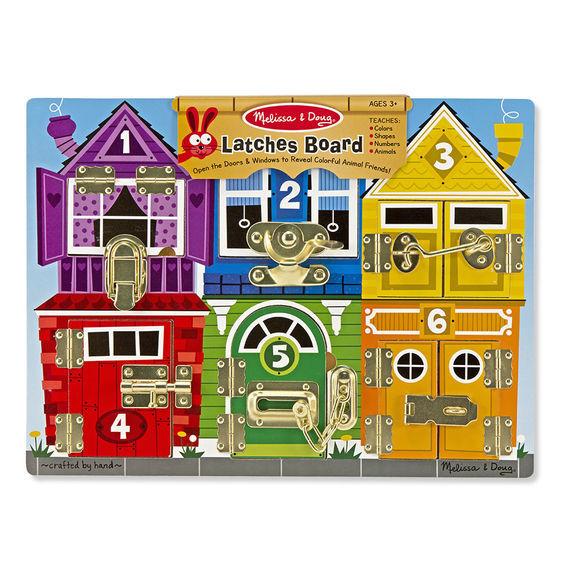 *Montessori Inspired Toy*This beautifully crafted wooden board with polished brass locks, latches, hooks and clasps, has hide-and-seek pictures behind each door and helps develop fine motor and memory skills.*Suitable for ages 3 & up*