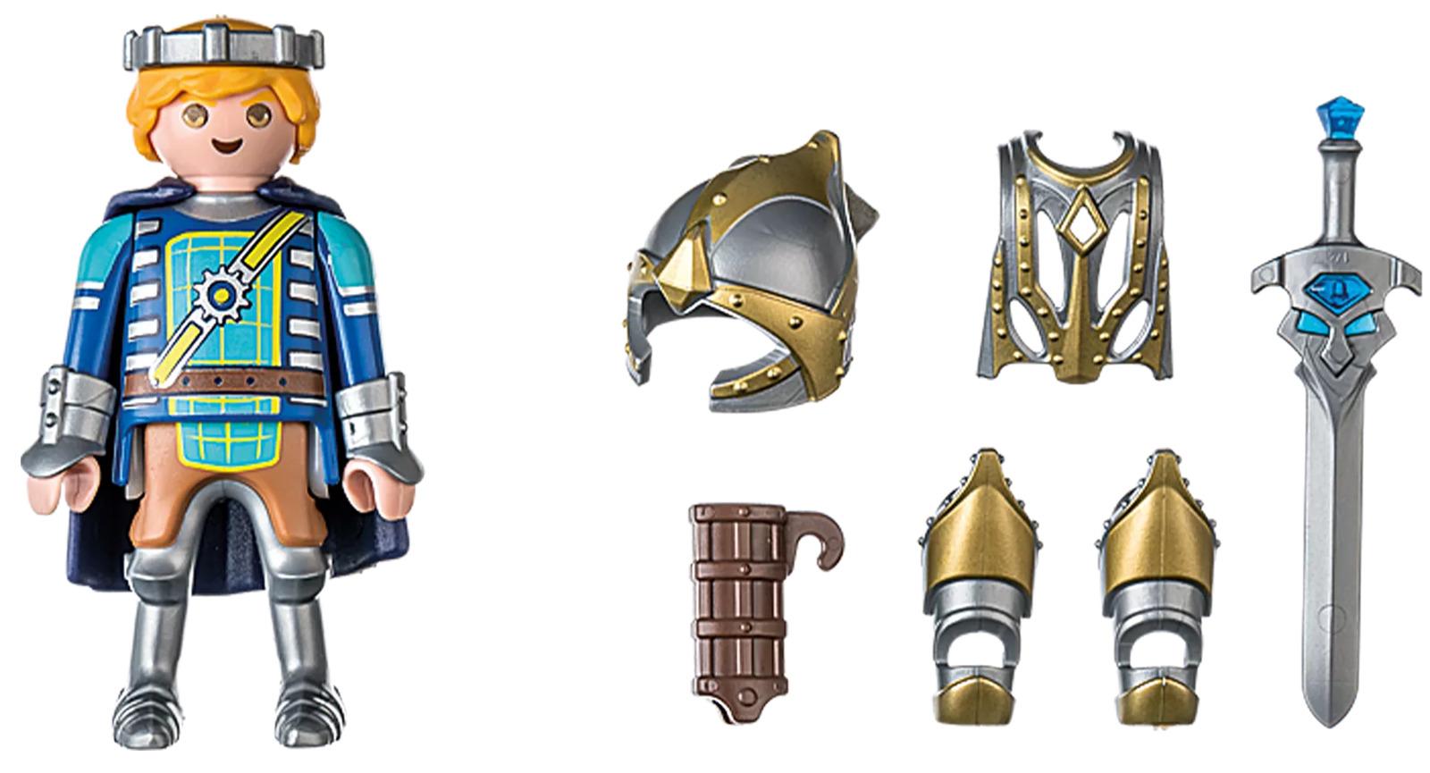*Playmobil: Arwynn with Invincibus (71301)*Wearing the Invincibus armour makes Arwynn, Prince of Novelmore, the most powerful knight to protect his people.Prince Arwynn is always ready for the next adventure. Whether it's against the fearsome Burnham Raiders or into the desert of Sal'ahari Sands, Arwynn faces every challenge with courage and determination, and with his friends Gwynn and Dario. In addition to his sword and cape, Arwynn has at his disposal the magical armor Invincibus. When he puts it on, he becomes invincible and puts any enemy to flight with ease. A perfect souvenir or gift for knight fans aged 4 and up.*Contents:** Figures: 1 knight* Accessories: 1 crown, 1 cloak, 1 quiver, 2 armour, 1 breastplate, 1 helmet, 2 arm cuffs*Suitable for Ages 4+*