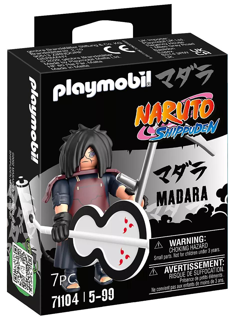 *Playmobil: Naruto Shippuden – Madara (71104)*Madara wants to imprison the world in the eternal illusion of his choosing.The successful collaboration between PLAYMOBIL and NARUTO goes into the second round. All anime fans can look forward to new characters from the exciting NARUTO universe. The creative figures inspire with lots of details and cool accessories from the well-known hit series and are the eye-catcher in every fan article showcase. The PLAYMOBIL set includes NARUTO SHIPPUDEN character Madara with shoulder-length black hair covering his right eye. In his hand he holds a scythe as well as a gunbai fan.*Contents:** Figures: 1 Madara;* Accessories: 1 fan (Gunbai), 1 scythe*Suitable for Ages 4+*