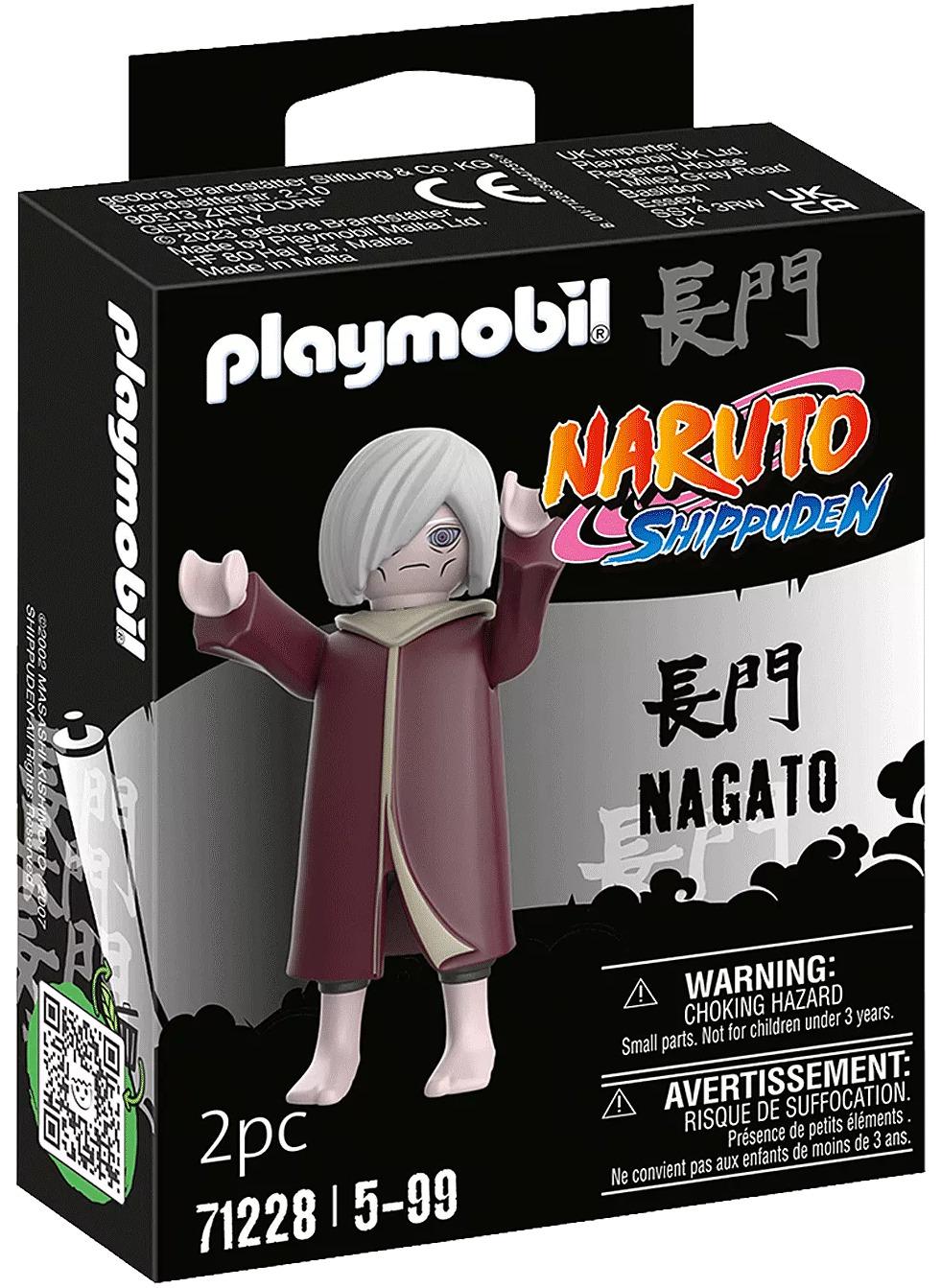 *Playmobil: Naruto Shippuden – Nagato Edo Tensei (71228)*Nagato was revived by the Reanimation Jutsu after having sacrificed himself by using a Jutsu from his Rinnegan.The PLAYMOBIL Anime universe continues to expand! All anime fans can look forward to new characters from the exciting NARUTO universe. The creative figures captivate with many details and cool accessories from the popular successful series and are a real eye-catcher in any fan merchandise display. The PLAYMOBIL set includes the NARUTO SHIPPUDEN character Nagato Edo Tensei. Due to the coat, the figure cannot sit. The set includes a stand plate for a secure display.*Contents:** Figures: 1 Nagato;* Accessories: 1 stand plate*Suitable for Ages 4+*