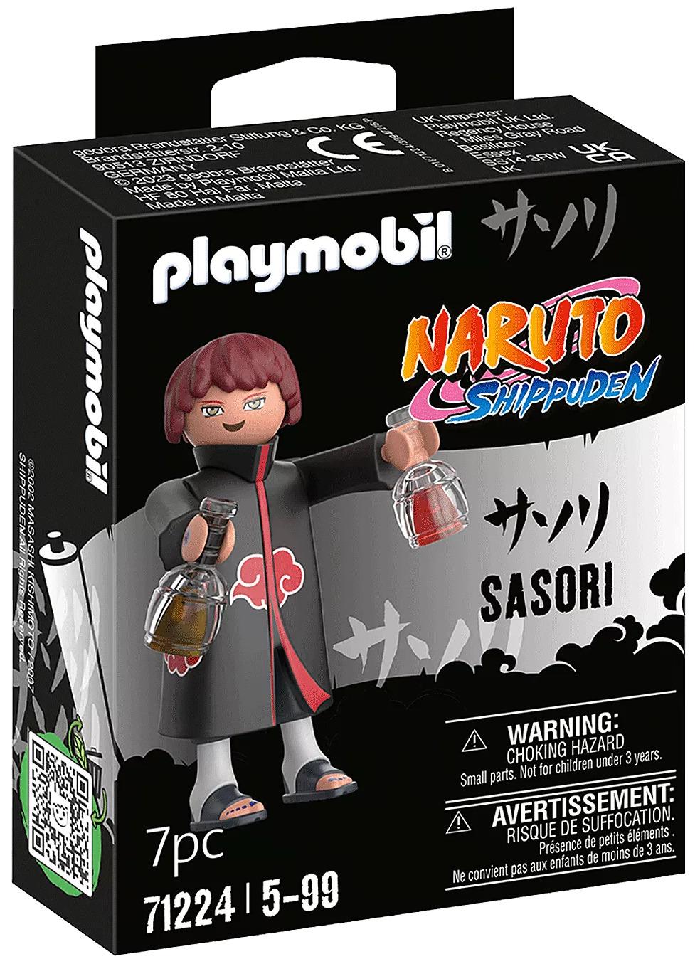 *Playmobil: Naruto Shippuden – Sasori (71224)*Sasori is a member of Akatsuki. His goal is to attain a callous and ascetic eternal life, which is why he transforms his body into a doll.The PLAYMOBIL Anime universe continues to expand! All anime fans can look forward to new characters from the exciting NARUTO universe. The creative figures captivate with many details and cool accessories from the popular successful series and are a real eye-catcher in any fan merchandise display. The PLAYMOBIL set includes the NARUTO SHIPPUDEN character Sasori with two bottles. An label is included for the hand as a finger ring. For a secure display, the figure can be placed on the stand plate.*Contents:** Figures: 1 Scorpion;* Accessories: 2 bottles, 1 finger ring label, 1 stand plate*Suitable for Ages 4+*