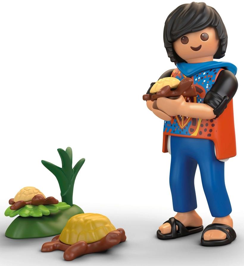 *Playmobil: Turtle Terrarium (71748)*The zookeeper cares for the turtle and its offspring, which are housed in the species-appropriate terrarium. Caring for turtles has never been so exciting! The detailed terrarium is equipped with a water bowl, lush plants and many accessories, including lettuce, dry food and a shell care product, to keep the turtles happy and healthy. The zookeeper's re­movable flip-flops add a playful touch as she lovingly cares for the turtle family.With creative details, this PLAYMOBIL set invites you to learn more about the fascinating tank friends and to look after them in a playful way – for hours of imaginative fun!*Contents:** Figures: 1 man, 1 turtle, 2 turtle babies* Accessories: 1 water bowl, 2 plants, 2 salads, 1 bag of dry food, 1 water spray bottle, 1 tank care product, 2 flip-flops, 1 box, 1 terrarium*Suitable for Ages 4+*