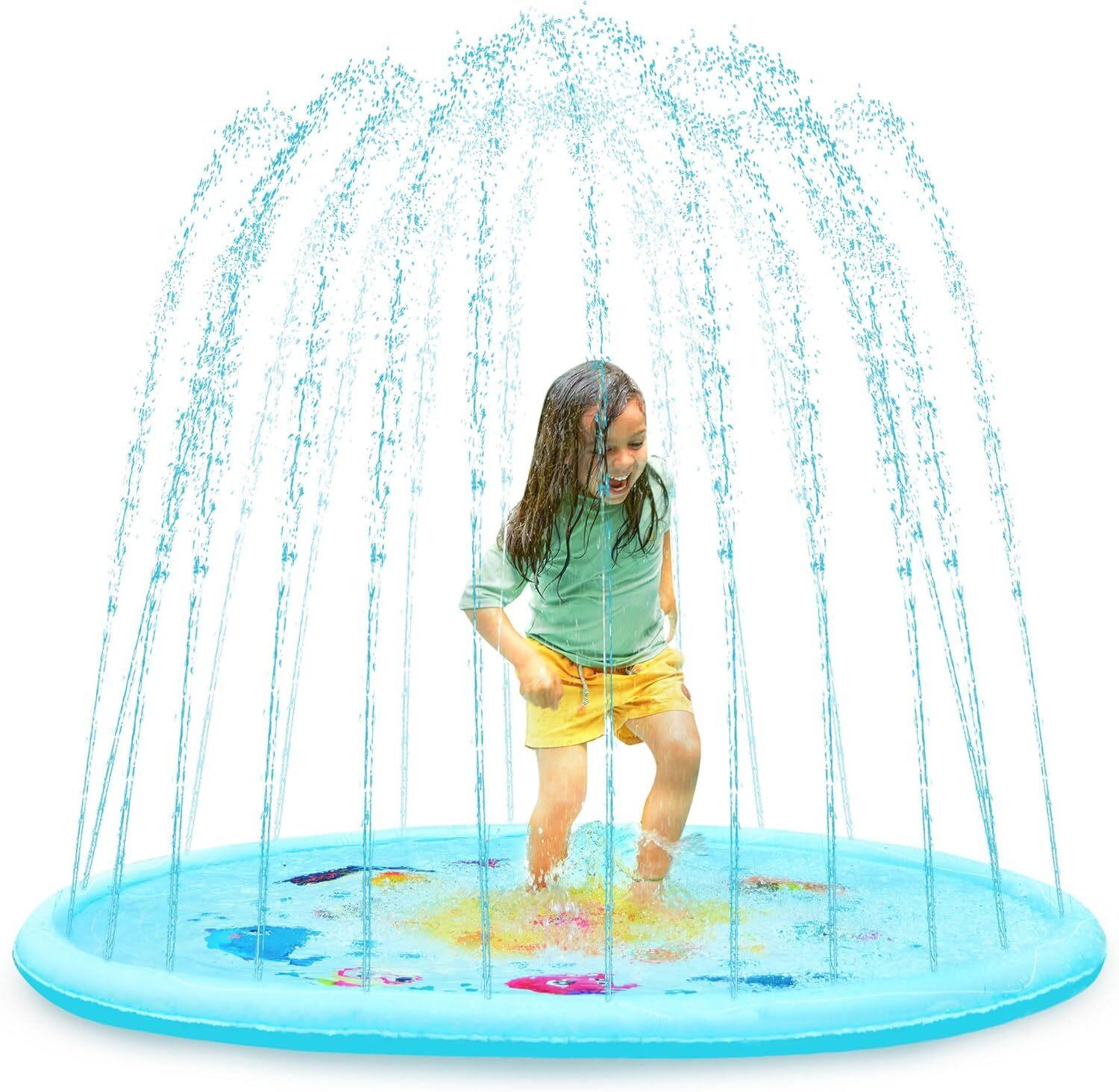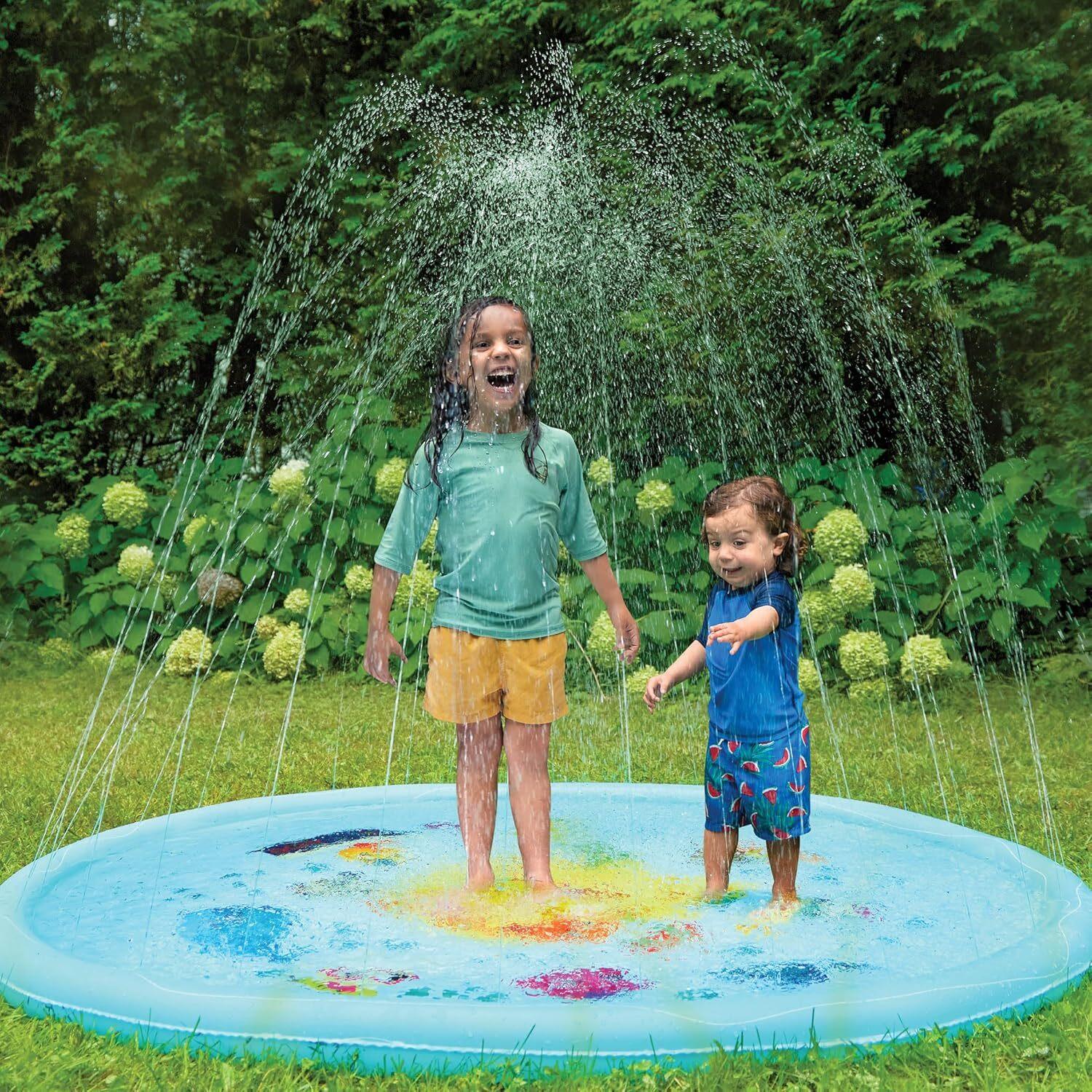 *B. – Splish n Splash Water Mat*B.toys Water Splash Mat, Dive into the fun with our Splish ‘n’ Splash Water Mat! With a generous 70” (1.7 m) diameter, its quick and easy installation provides hours of instant entertainment. Simply lay it on the ground, connect the garden hose, and water jets all around the round mat will create a fun-filled tropical paradise for kids.Turn your outdoor space into an aquatic adventure with this playful and refreshing water mat!*Features:** Splish ‘n’ Splash: Wade into summer fun with a tropical splash pad made for splishin' and splashin' – you might even spy a rainbow!* Spectacular Sprinkler: What better than splashing in sun? Dancing under a 4' high shower of refreshing water, of course!* Room for a Crew: At 70" wide, this splash mat has room for everyone to cool off and get their toes wet.* Quick & Easy: Hook up a standard 3/8" garden hose and let the water flow. You'll know its ready when the sprinkler starts spraying!*Suitable for Ages 1+*_WARNING: Drowning Hazard. Parental supervision is at all times is advised._