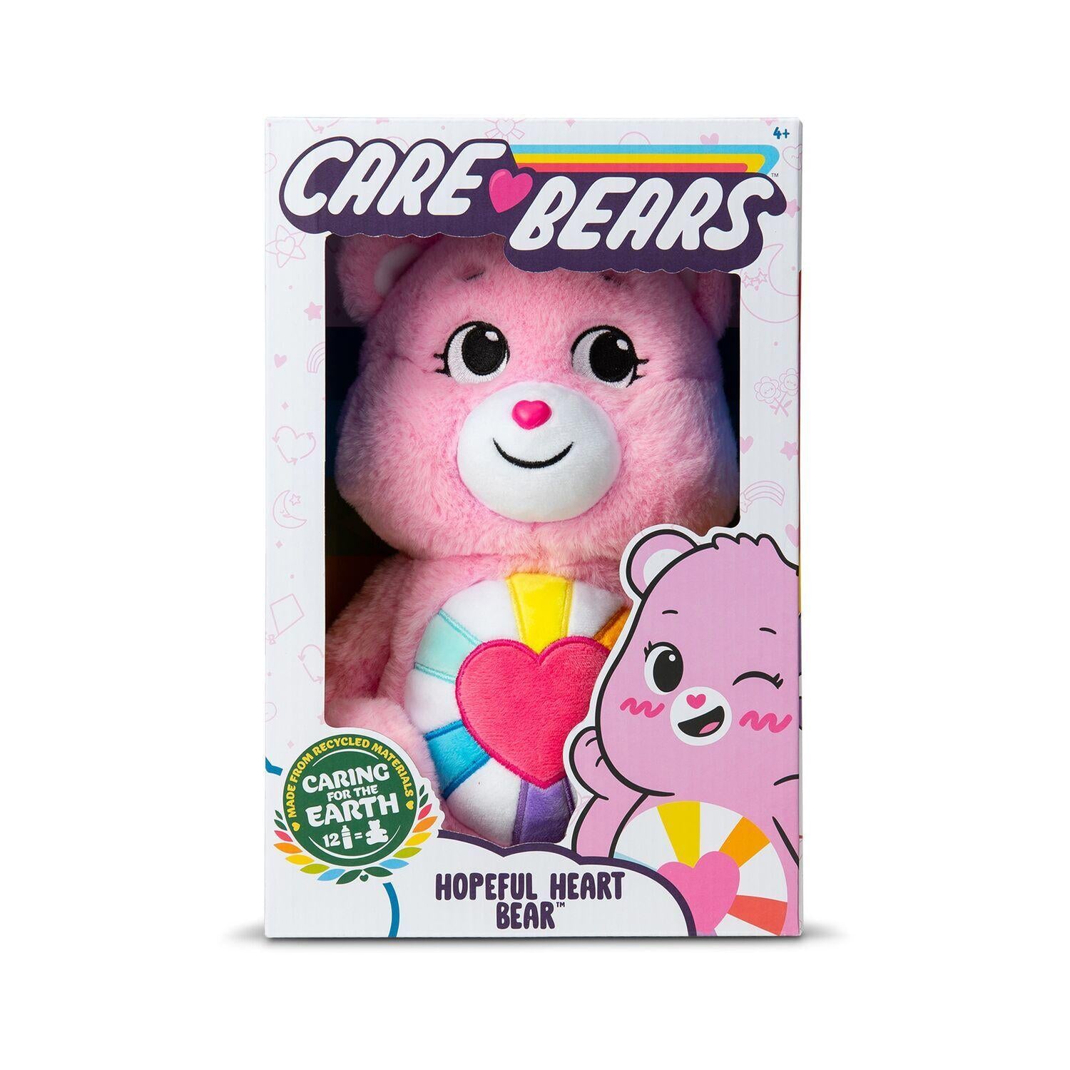 The Care Bears are a group of lovable, huggable BFFS who are all about spreading good caring vibes across the world.As part of their mission of sharing and caring, they want to ensure that we are keeping our earth clean for generations to come by embracing a message of “cleaner and greener is the way to grow!” To champion their message of environmental responsibility, 14″ Hopeful Heart Bear plushie has become one of the newest besties to “go green!” Made from sustainable materials, 14″ Hopeful Heart Bear has been designed with the earth in mind while still maintaining the soft snuggable plush feel that this brand is known for.*Features:** Made from sustainable materials and super soft, 14″ Hopeful Heart Bear’s plush fur is so snuggable you’ll never want to put your bestie down! Get ready for unlimited bear hugs!* Featured in a beautiful 14-inch plush scale, Hopeful Heart Bear is the perfect size for taking on adventures of sharing and caring!* Hopeful Heart Bear wears a belly badge of a heart with many colorful rays, she is forever looking on the bright side and believes that everything will always work out in the end!* Sharing is caring! Hopeful Heart Bear and all of the Care Bear besties are perfect for any gift-giving occasion! Collect them all!* Suitable for ages 4+