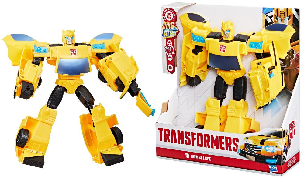 *Transformers: Mega Sting Bumblebee – 12" Figure*The 2-in-1 Transformers Mega Sting Bumblebee toy is ready for exciting adventures! This 11.5-inch (29 cm) figure converts between robot and car mode in 14 steps. Activate his signature Sting Attack in both modes—the stinger even moves as the car rolls! Transformers toy figures that feature popular characters like Optimus Prime, Megatron, and Bumblebee are a great way to introduce kids to the exciting world of Transformers robots, and make great gifts for boys and girls ages 6 and up.TRANSFORMERS and HASBRO and all related trademarks and logos are trademarks of Hasbro, Inc.*Features:** This Bumblebee Transformers action figure converts from robot to toy car mode for awesome 2-in-1 play* This Transformers figure can change between a robot toy and a car toy in 14 steps. Conversion is simple enough for kids to do themselves!* Stinger works in both modes! In car mode, the stinger moves as the car rolls! In robot mode, stinger folds out from the arm for iconic poses and awesome pretend battles* In robot mode, Bumblebee figure is 11.5 inches (29 cm) tall. Stage larger-than-life battles with big Transformers toys like this one!* Imagine epic battle scenes with Bumblebee in car mode! Great for kids who love toy cars and toy trucks* Inspired by Bumblebee, the loyal Autobot scout. A great gift for boys and girls who love robot toys* Look for additional Transformers figures to build a collection (each sold separately, subject to availability)*Suitable for Ages 6+*