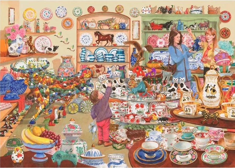 Get ready to start your next House of Puzzles project! Illustrated by extraordinary artist Tracy Hall, the Bulls In A China Shop 1000 piece jigsaw features a beautifully detailed scene to captivate both beginner and seasoned puzzle fanatics!