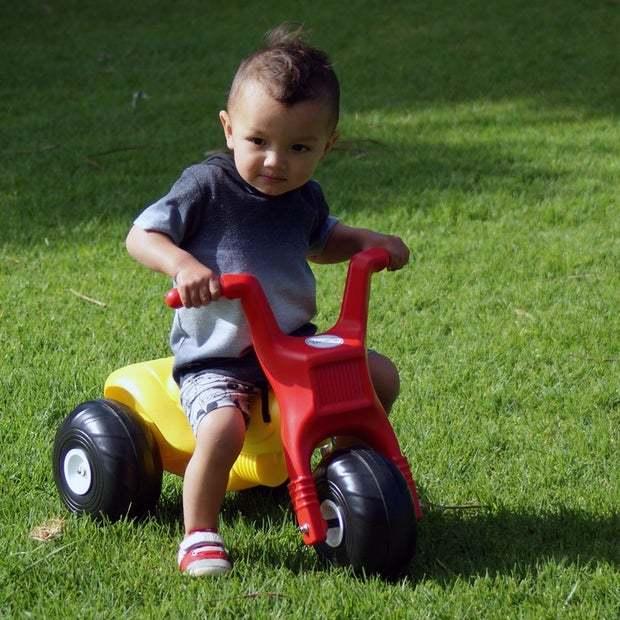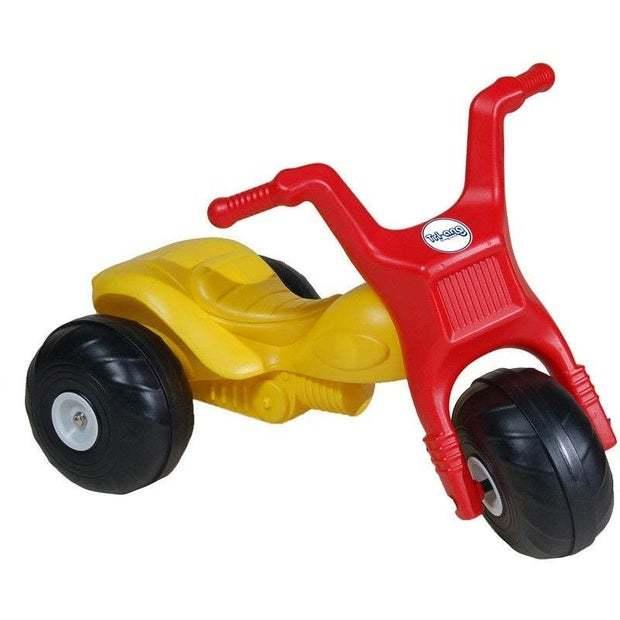 *Tri-ang AT Cycle Red/Yellow*This 3 wheel starter cycle is great fun for younger children aged between 1 and 4 years. Its wide rear wheel base and easy to steer handle bars provide your child with stability whilst its wide seat and smooth edges provide a more comfortable ride. Suitable for indoor and outdoor use.*Features:** Polypropylene moldings – strong and durable* UV stabilised materials* Smooth edges for comfort and safety* seat and narrow body – easy to ride with nappies on* Large handle bar with ergonomically designed hand grip – easy to steer, gives your child a better grip* Wide rear wheel base for stability* Look alike – looks like a genuine ATV* Bright attractive colours* Easy to assemble* Replacement parts available*Suitable for ages 1–4 years*Made in New Zealand.