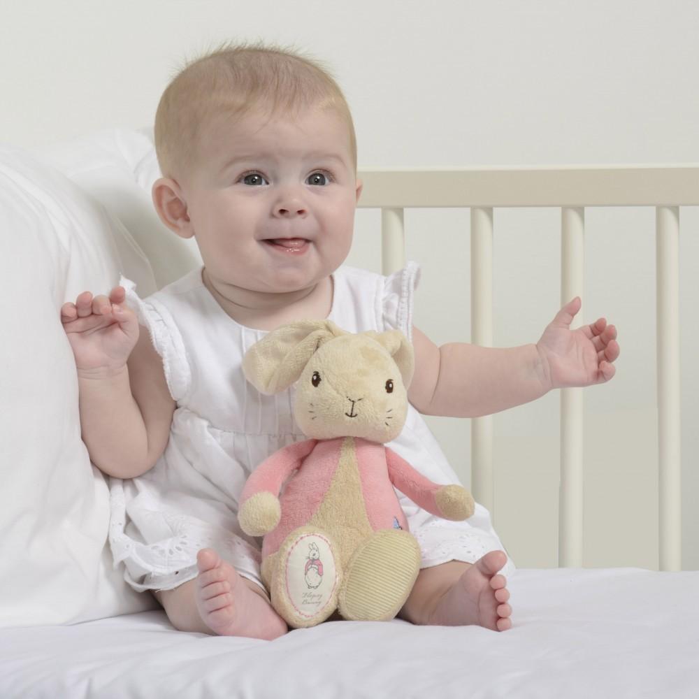 *Peter Rabbit: My First Flopsy – 10" Plush*This beautiful Flopsy Bunny soft toy is made from premium soft plush to ensure she is as gentle against babies skin as can be. Flopsy Bunny is as seen in the original illustrations and is wearing her signature Pink jacket with a cute embroidered butterfly Motif. Flopsy has Embroidered facial features, a cute Flopsy Bunny logo on her foot and is Machine washable so makes a perfect gift for Newborns or decoration piece for Nurserys.*Specifics:** Theme: Peter Rabbit* Dimensions: 26cm* Colour: Tan/Pink*Suitable for ages 1m & up*