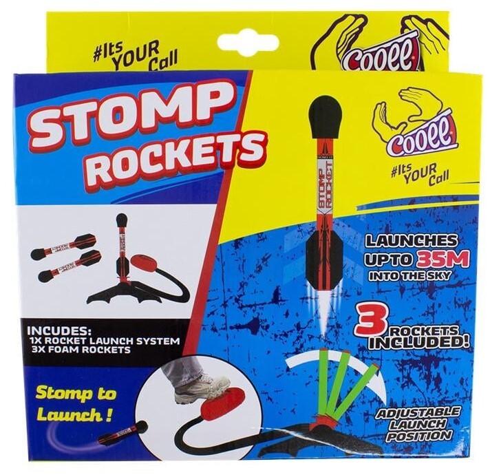 *Cooee: Outdoor Play Stomp Rocket*Launch rockets into the sky simply by aiming and stomping and watch as the rockets blast through the air! The harder you stomp, the farther they blast! With an adjustable aiming tool, you can fine-tune your launches for precision and challenge friends and family to reach new heights.*Features:** 1× Rocket launching system* 3× Soft foam rockets* Hours of outdoor fun* Get the kids outside and enjoying the summer fun* Suitable for kids and adults*Suitable for Ages 6+*_WARNING: Do not fire at eyes or face._