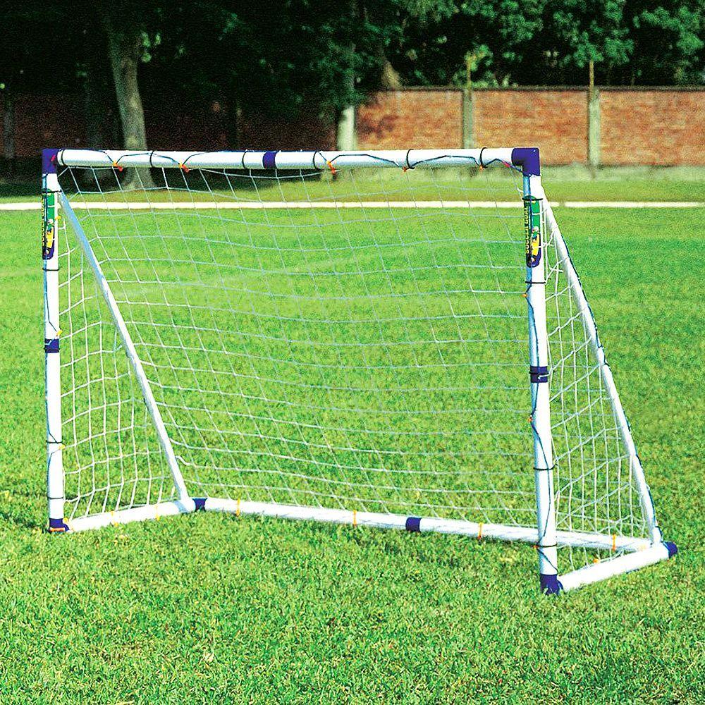 *Requiring no tools for assembly, this soccer goal is an easy to assemble and disassemble.*The six-foot-wide trainer goal is half size of a standard soccer goal, offers plenty of room to practice a multitude of soccer skills, ideal for everyday practice and games.The main material for the rods and bars ispolyvinyl chloride with UV protection. The material was tested by the European Union for the content of phthalates.The joints are made of 40% reinforced polypropylene to reflect shocks.*Contents:** 1 x Soccer Goal* 1 x Soccer Goal Net* 6 x Metal Stakes* Goal Size: L183 x H130 x D96cm