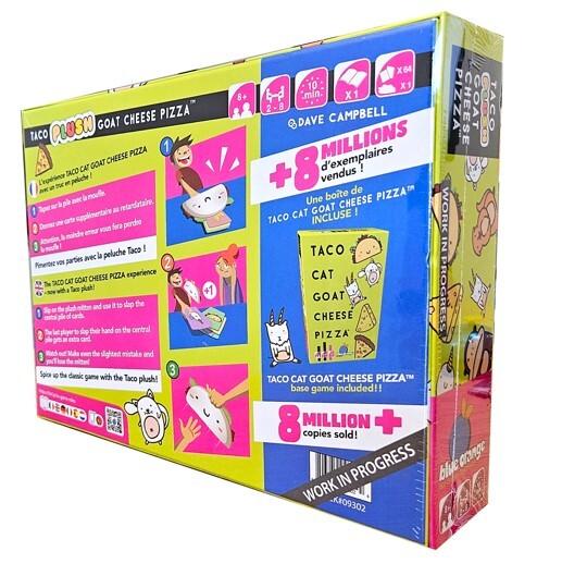 The Taco Cat Goat Cheese Pizza experience – now with a Taco plush!Slip on the plush mitten and use it to slap the central pile of cards.The last player to slap their hand on the central pile gets an extra card.Watch out! Make even the slightest mistake and you'll lose the mitten!Spice up the classic game with the Taco Plush!*Features:** Players: 2–8* Playtime: 10 Minutes* Ages: 8+*Contents:** 1× Taco Plush Mitten* 64× Cards* 1× Rulebook