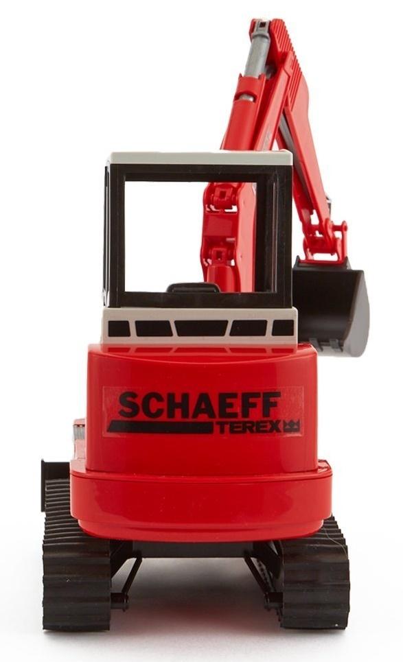 *Bruder: Schaeff Mini Excavator*The excavator arm is fully functioning, the bucket can be detached and the plough blade is adjustable. The jib crane of the Schaeff mini excavator can be articulated laterally, making a realistic excavator function possible. Also the driver's cab of the Schaeff mini excavator turns by 360° and the rubber tracks ensure a quiet rolling motion. To add to the fun of playing, it the Schaeff mini excavator can be equipped with accessories \[art. no.: 02408\] consisting of hydraulic hammer, ground auger and four pylons (not included).*Specifics:** Realistic details and functions encourage imaginative play* Scale 1:16; Suitable for playing indoors and outdoors* Manufactured from high-quality ABS plastics* Made in Germany*Suitable for ages 5 & up*_The playing child is at the centre of BRUDER Spielwaren's phi­losophy. It is through playing that children make experiences in the adult world which they can use for their own development._