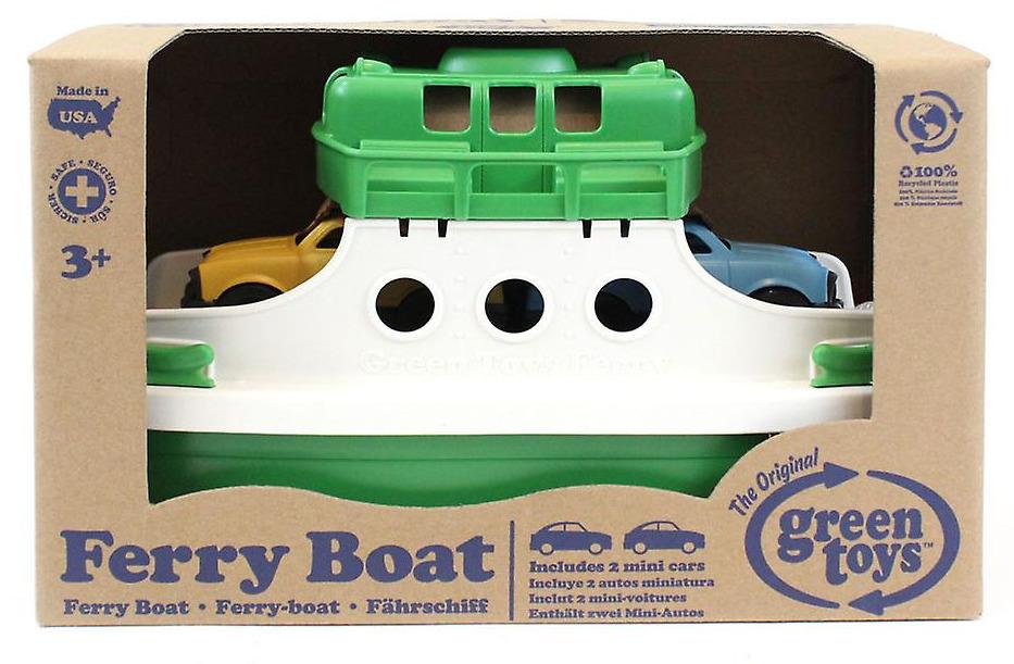 *Set sail with the Green Toys Ferry Boat for a journey across the bath or paddling pool*This green & white ferry water toy comes with two storeys, a large cargo area, a slide-out ramp, and two Green Toys Mini Fastbacks cars. Use the slide-out ramp to load up the bottom cargo level that fits up to four cars. A realistic ferry water toy, the open-top deck has two small benches on each side, as well as eleven windows looking down into the main level.This water toy for kids is ideal for any type of water – durable and buoyant, the hull also detaches for easy cleaning. Safe, non-toxic and contains zero BPA, PVC, phthalates or external coatings. Consists of 3 play pieces.*Features:** Manufactured in the USA* Two colourful cars, a spacious cargo area and slide-out ramp* The open design allows room for action figures and other toys to fit inside the boat* Made with recycled plastic, safe, non-toxic. Dishwasher-safe* Product Dimensions: 25.4cm L x 16cm H x 16.77cm*Suitable for ages 3 & up*