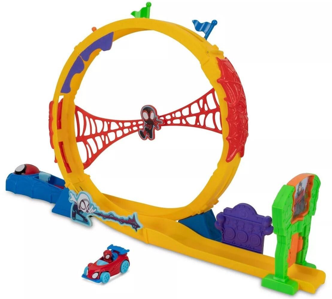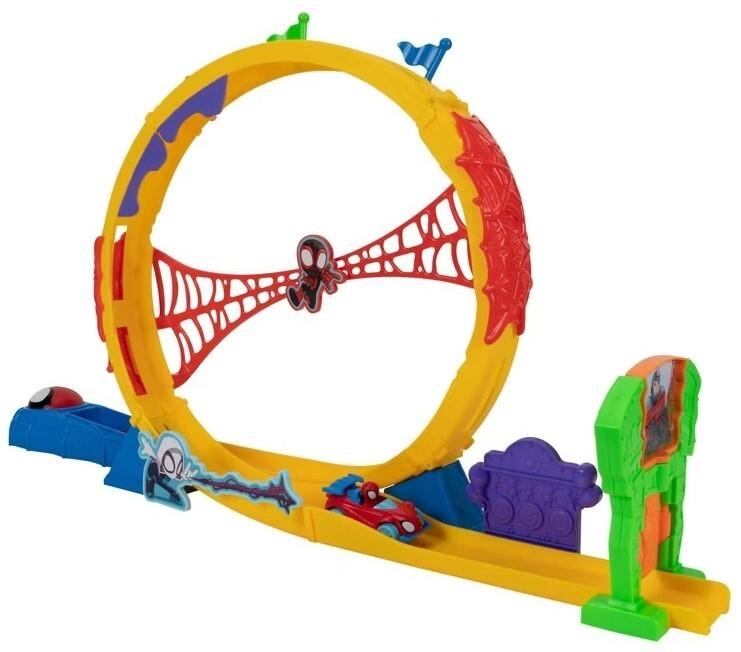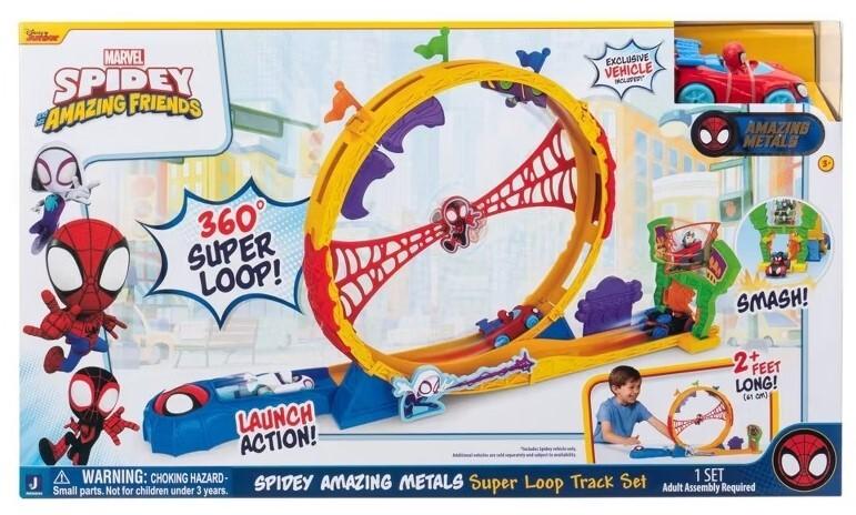*Spidey and Friends: Metals Track Set*Ride up and around the MARVEL Spidey and His Amazing Friends Amazing Metals Super Loop Track Set. This deluxe 28-inch race track features a vehicle launcher, super loop, rotating Spin, and double exit doors. The set also includes an exclusive 3-inch Amazing Metals vehicle of Spidey’s Web Crawler. First, place the vehicle onto the launcher and press down on the Spidey head to send it zooming into action. It will then race around a 360 degree super loop, zooming past coaster cars and Spin (whom you can manually rotate).It will then complete the loop, fly past the carnival tent, and crash through the double exit doors to finish the adventure. The Amazing Metals Super Loop Track Set is inspired by the hit show Spidey and His Amazing Friends. Officially licensed MARVEL product from Jazwares.*Features:** Ride up and around the MARVEL Amazing Metals Super Loop Track Set* 28-inch track features a vehicle launcher, super loop, exit doors, and more* Press down the Spidey head to launch any 3-inch Amazing Metals vehicle* It will then zoom up, down, and around a 360 degree super loop* Also includes an exclusive 3-inch Spidey Amazing Metals vehicle* Inspired by the hit show Spidey and His Amazing Friends*Suitable for Ages 3+*