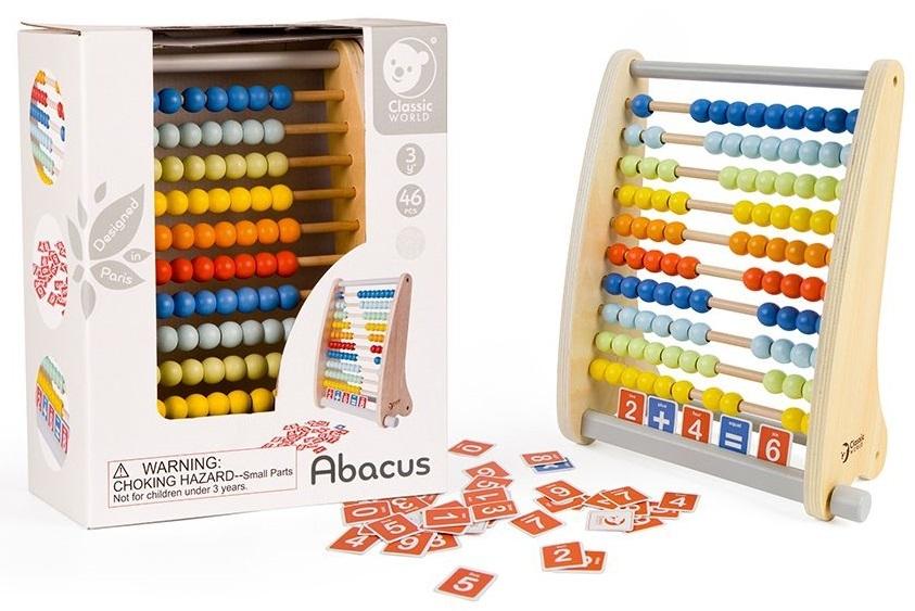 *Classic World: Abacus*This abacus enables children to develop various skills at different stages of their growth. They can manipulate the vibrant beads, honing their counting skills as they roll and identify the colors. As they progress, they can also explore the realm of basic mathematics using specially designed cards.*Features:** They can manipulate the vibrant beads, honing their counting skills as they roll and identify the colors.* As they progress, they can also explore the realm of basic mathematics using specially designed cards.* Dimensions: 23.5 × 12 × 29 cm* Age: 3+ years