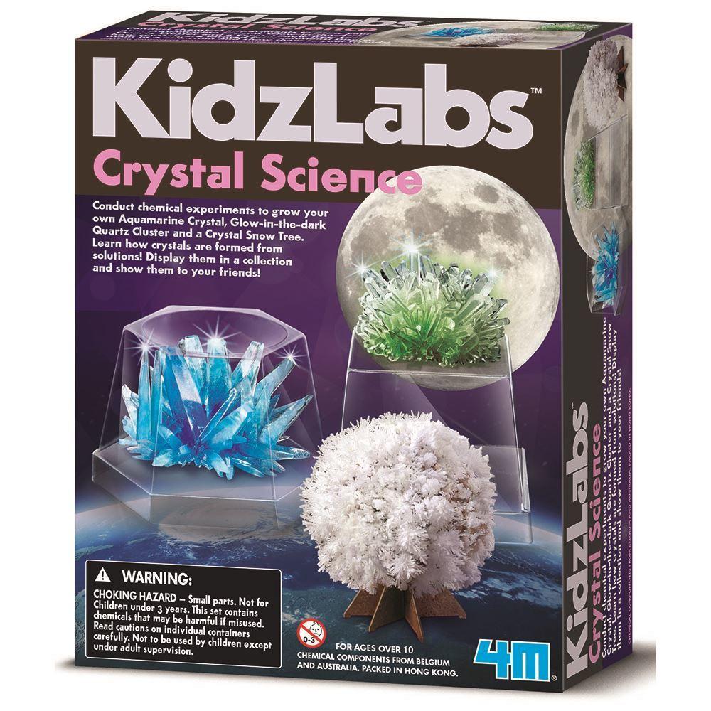 Conduct different chemical experiments to grow your very own aqamarine crystal cluster, glow in the dark quartz cluster and crystal tree.Learn how crystals are formed from solutions! Display them in a collection and share them with your friends!Set contains large bag of white crystal compound, a small bag of blue seeding mixture, a square transparent base with cover, a shallow hexagonal container, a glow in the dark moon crystal base, a stirring bowl, 1 set of crystal snow tree paper and detailed instructions. Also needed, but not included in this kit: a jar of steaming hot water, an apron, protective goggles, and rubber gloves.The Aquamarine Crystal can grow to about 30mm wide and 25mm high.The Moon Crystal can grow to about 45mm wide and 35mm high. The Crystal Snow tree can grow to approximately 70mm wide and 80mm high. The size, shape and colour will depend on the experimental conditionsAge: 10+ years. Contains small parts.