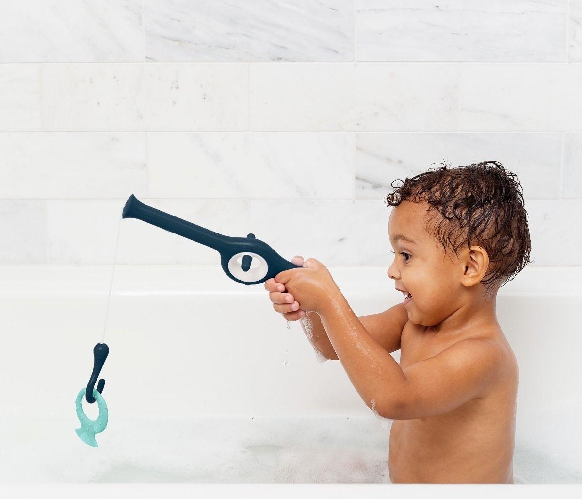 *_Boon: Cast Fishing Rod – Navy_*One try and they'll be hooked!Need a little bath-time bait? Cast is so much fun they won't want to leave the tub. The working pole features fishing line that reels in and weighted hooks they can use to snag whatever's floating by.Need a little bath-time bait? Cast is so much fun they won't want to leave the tub. The working pole features fishing line that reels in and weighted hooks they can use to snag whatever's floating by. It even comes with three floating sea creatures. Please catch and release.*Features:** Functional reel* Weighted hook submerges in water* Includes three floating sea creatures*Specifications:** *Materials:* Made without BPA or PVC* *Care Instructions:* Wash thoroughly before initial use and periodically. Hand wash in warm, soapy water. Rinse with clear water and air dry.*Suitable for 18 months & up*