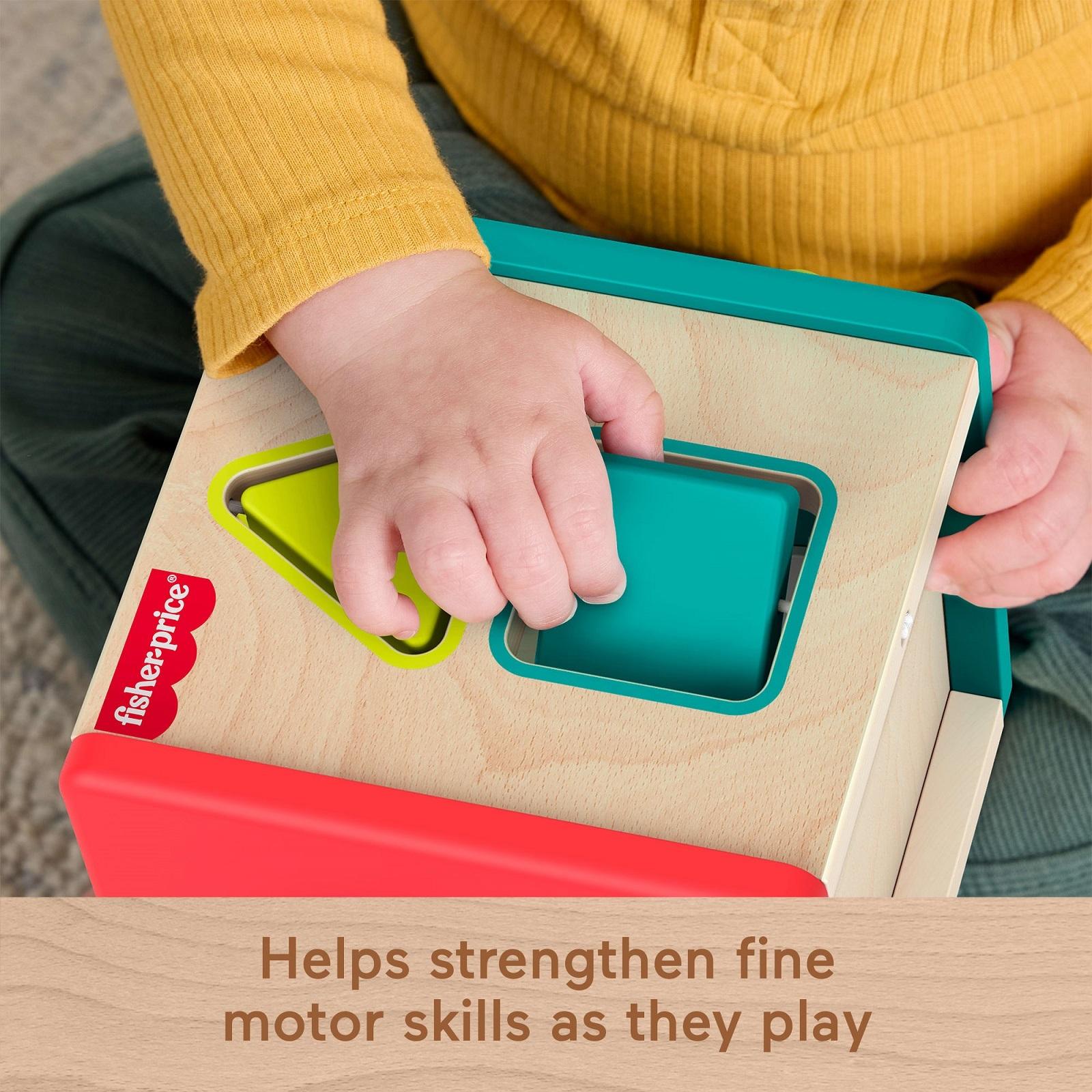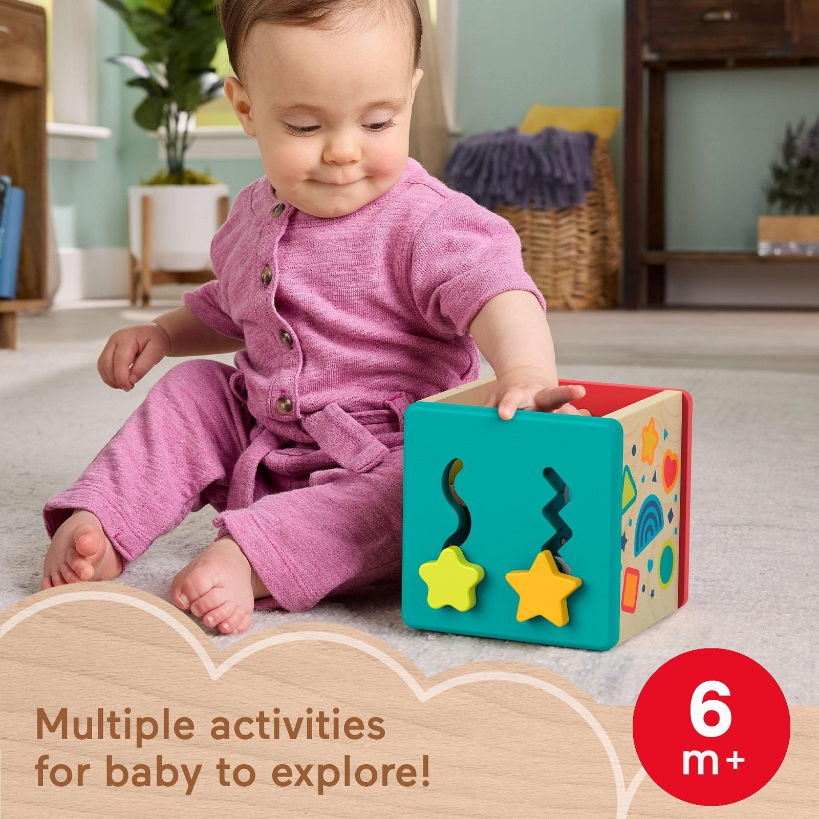 The Fisher-Price Wooden Activity Cube combines multiple fun activities into one engaging developmental toy for your baby. The cube is packed with busy activities for little hands to explore including a bead bar, shape spinners, double doors, and 2 fun maze paths.*Features:** Made with wood from Forest Stewardship Council-certified sources (FSC-N004566) and decorated with non-toxic, water-based paints* The Wooden Activity Cube encourages your baby’s curiosity and helps strengthen their fine motor and problem-solving skills as they play.* Colors and decorations may vary.* Suitable for ages 6 months+