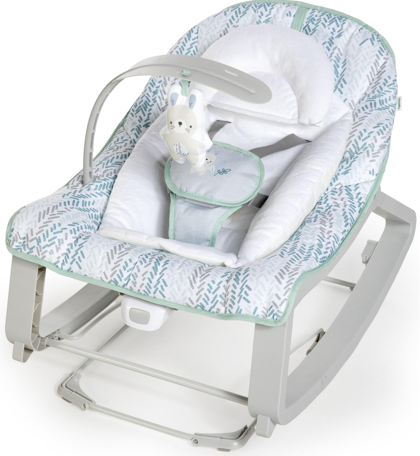 *Ingenuity Keep Cozy 3-in-1 Grow With Me Bounce & Rock Seat Spruce*The Ingenuity™ Keep Cozy™ 3-in-1 Grow with Me™ Bounce & Rock Seat grows with baby and is designed to be enjoyed for years. Choose between bouncing, rocking, or a stationary seat. Soothing vibrations, two reclining positions, and a removable infant bolster help newborns feel snug and secure. As your child grows, the infant seat will become their favourite comfy spot in the house.The Keep Cozy™ includes a detachable hanging toy to provide playtime entertainment while at home or on the go. Its soft, neutral design blends right into your home, so you can feel comfortable leaving it out for anyone to see. Accommodates infants and toddlers up to 18kg.*Features:** Suitable from 0–30 months or max weight of 18kg* 3 modes: Bouncing, rocking or stationary with rear kickstand* 2 recline positions* Soothing vibrations* Removable playtime toy bar* 5-point harness* Pop down rear kickstand* Requires 1 x C battery, not included