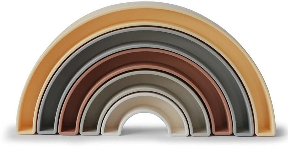 *_Mushie: Rainbow Stacker – Sol_*A beautiful and playful Rainbow Stacker in various colors from Mushie!Activate your baby with this fun and colorful rainbow toy in various colors. The rainbow will help develop both body and brain and will make sure that playtime will be fun and creative for hours.Let the imagination flow with the endless possibilities of stacking, sorting, and playing with the rainbow that promotes learning. You can also use it as a stylish decoration for your baby’s room.*Features:** Helps develop cognitive reasoning, fine motor skills, and language development* Made in Denmark* Clean with warm, soapy water and let air dry* Recommended for ages: 0–3* Material: Phthalate-free plastic* Measurements: Depth: 1.1875 in (front to back) / Width: 6.625 in (side to side) / Height: 3.5 in (top to bottom)