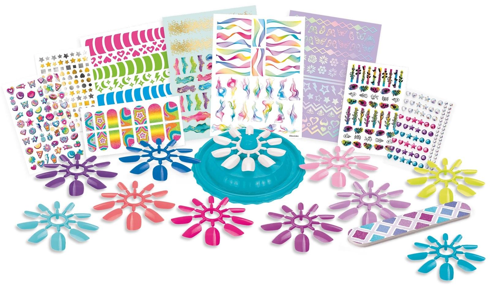 *Shimmer N Sparkle: Trendy Tips – Nail Expressions*Mani in minutes! Press on perfection! Mix and match nail stickers and gems to create a salon style manicure in minutes! Cra-Z-Art, based in Randolph, New Jersey, is a prime manufacturer and global leader in classic toy, arts and crafts kits, puzzles and school supplies.The conception, design and manufacture of high-quality, innovative products is an essential part of Cra-Z-Art’s family heritage.*Includes:** 6 Sheets of nail stickers* 1 Sheet of nail tattoos* 1 Sheet of stick-on gems* 1 Sheet of nail decals design tray* 12 Nail rings* 168 Nail adhesive stickers* 1 Nail file* Instructions*Suitable for ages 8 & up*