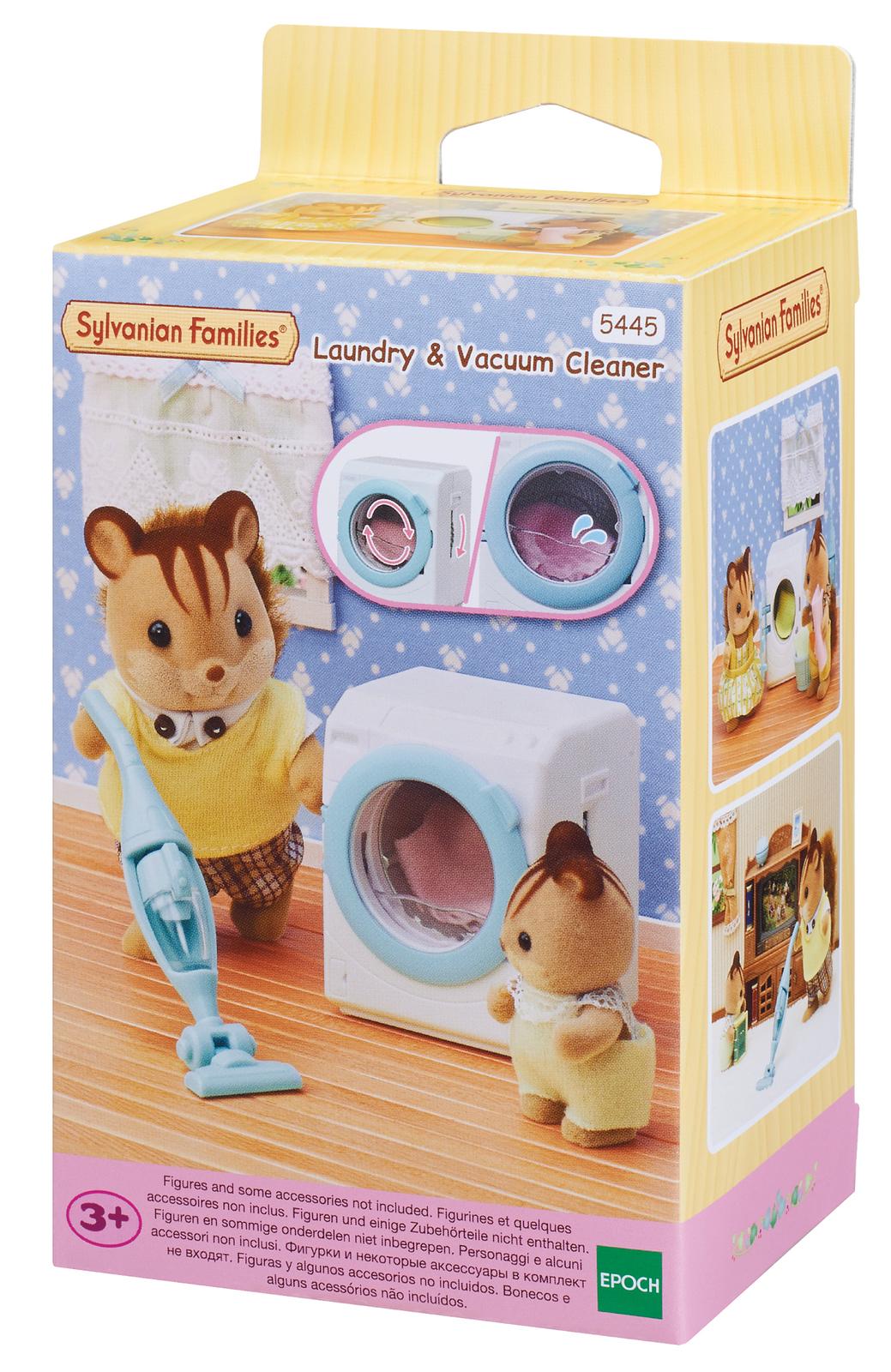 *Sylvanian Families – Laundry & Vacuum Cleaner Set*Even with the Sylvanian Families, someone has to keep the house clean! With this cordless vacuum cleaner and this washing machine you have done your household tasks super fast! Collect the other families and accessories for even more fun!*Features:** Stimulates imaginative children to create rich role-play.* Please note: Character dolls & additional accessories are sold separate.* This playset includes a total of 5 detailed pieces*Contents:** Washing Machine* Vacuum Cleaner* Hand-Held Vacuum* Bin, Towel*Suitable for ages 3 & up*